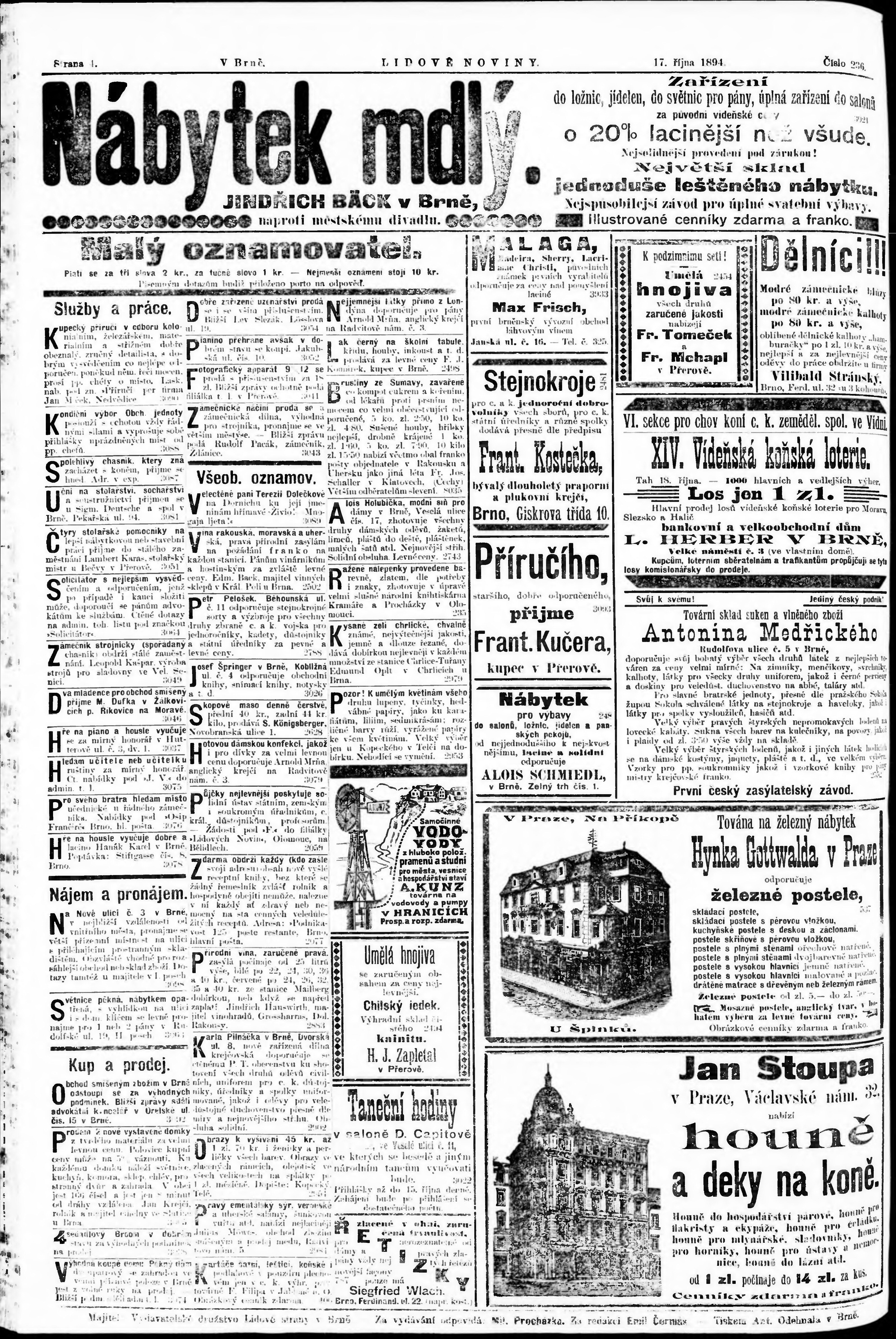 * Datum vydání výtisku: 17.10.1894 Číslo výtisku: 236 Poznámky k výtisku: poškozená předloha;