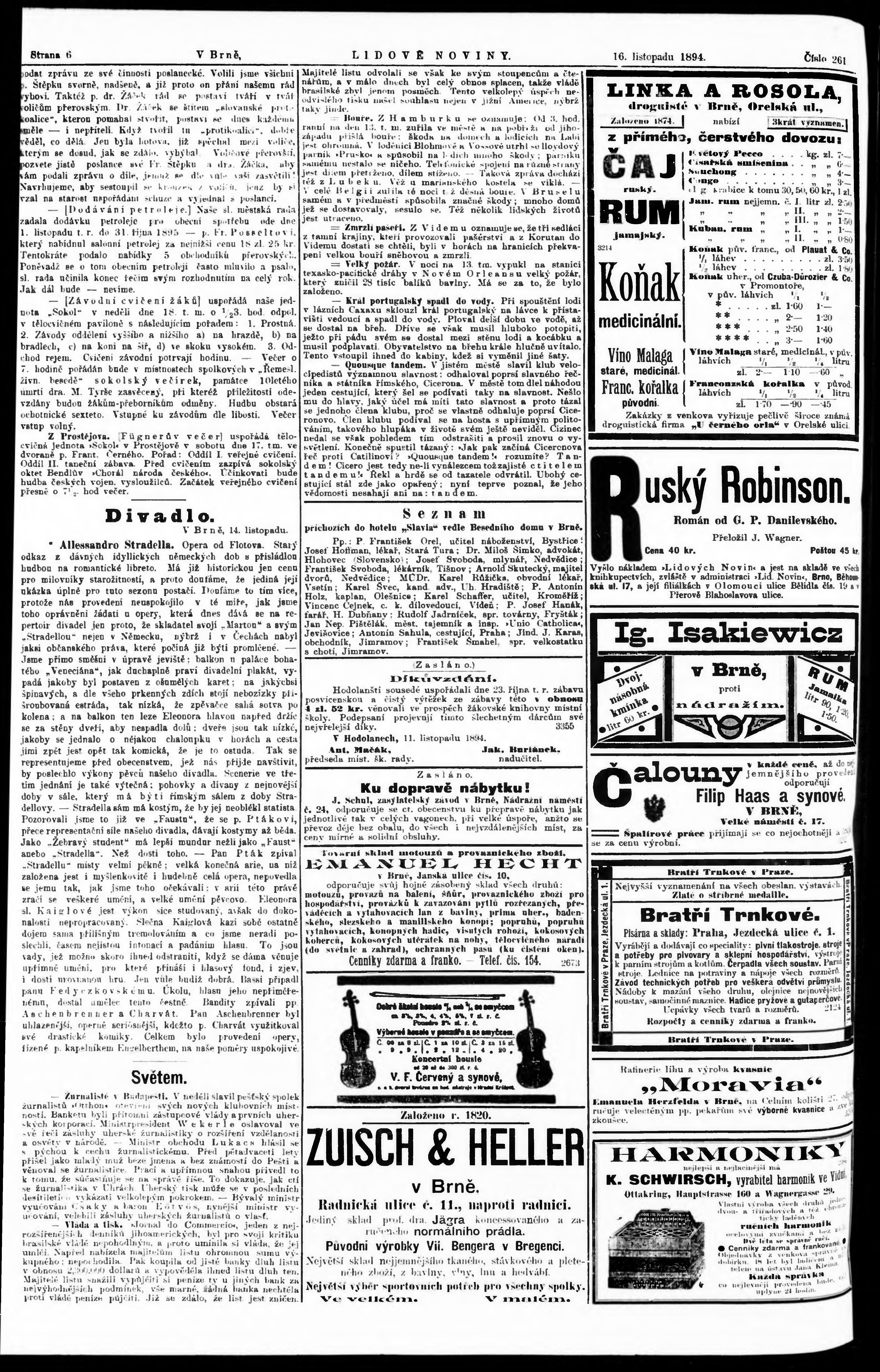 * Datum vydání výtisku: 16.11.1894 Číslo výtisku: 261 Poznámky k výtisku: poškozená předloha;