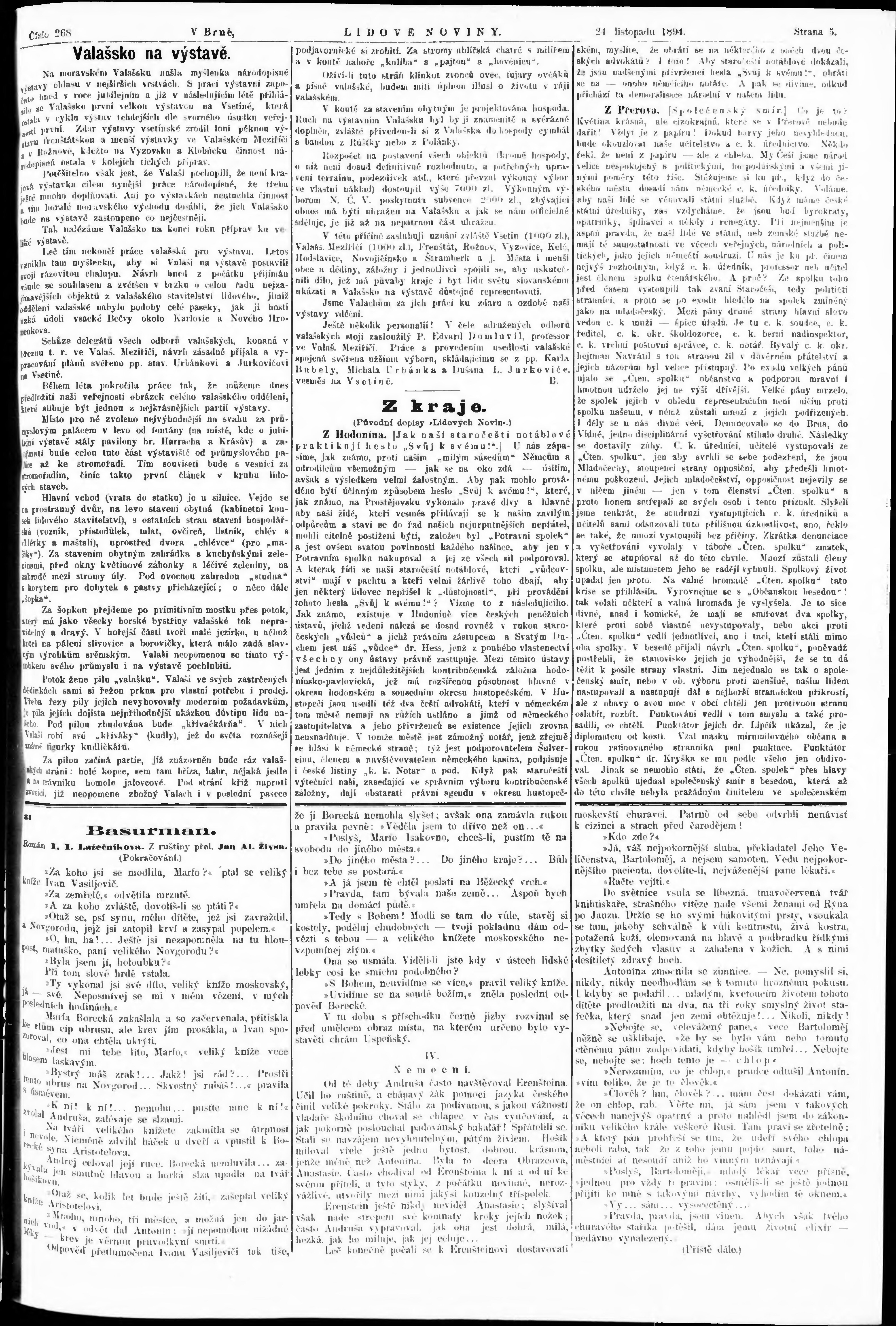 * Datum vydání výtisku: 24.11.1894 Číslo výtisku: 268