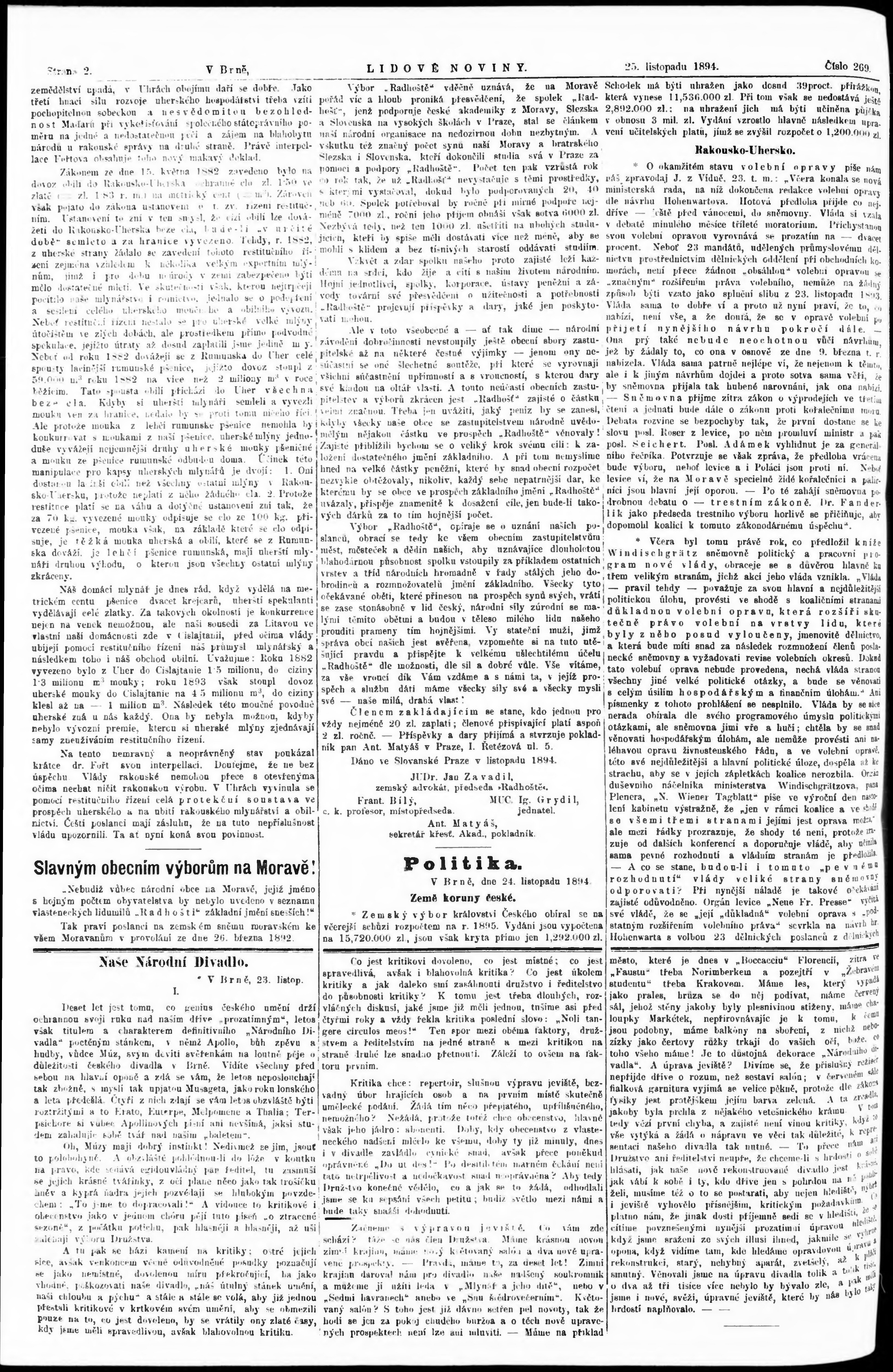 * Datum vydání výtisku: 25.11.1894 Číslo výtisku: 269