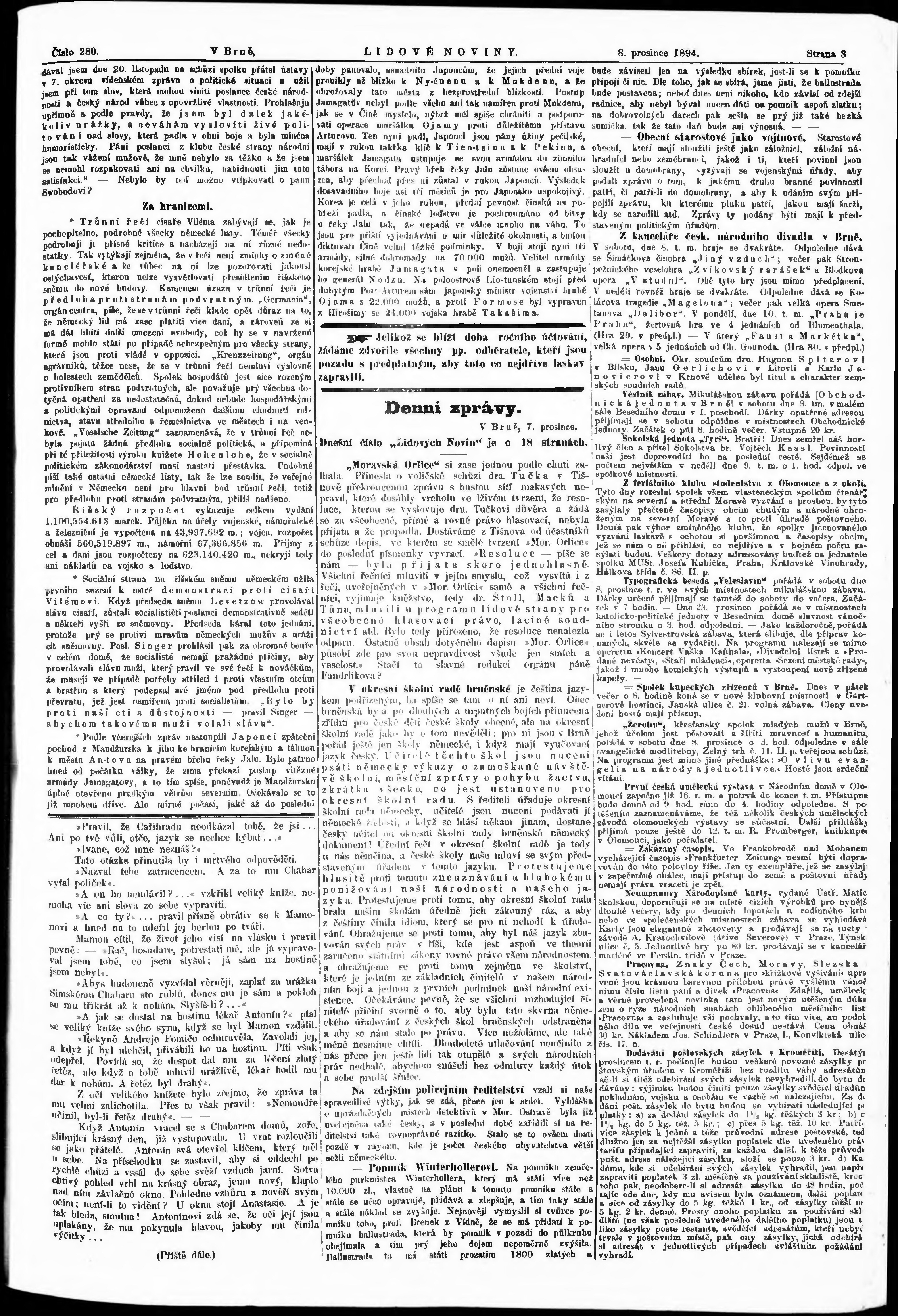 * Datum vydání výtisku: 8.12.1894 Číslo výtisku: 280 Poznámky k výtisku: s. 12 - 13 není k dispozici;