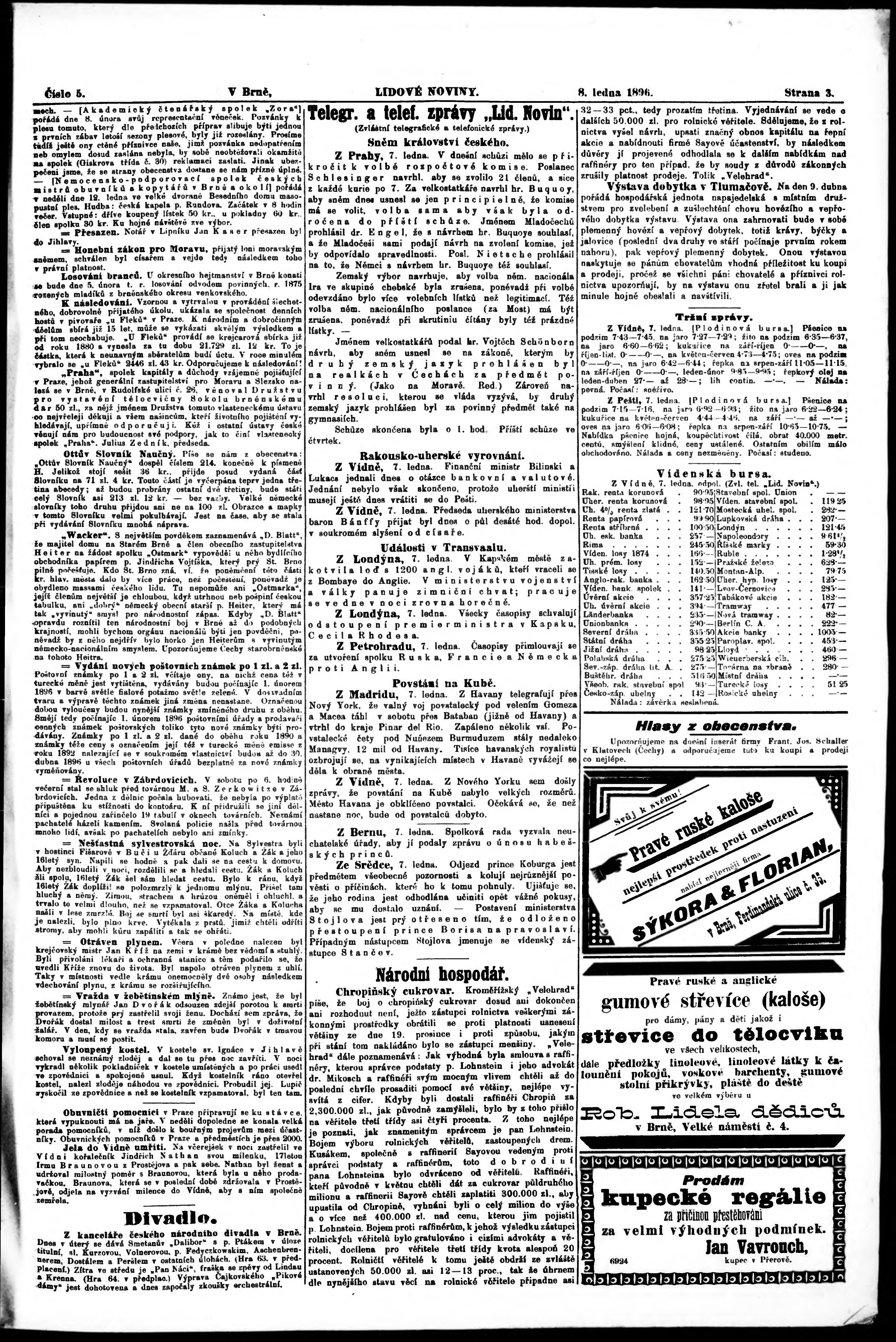 * Datum vydání výtisku: 8.1.1896 Číslo výtisku: 5