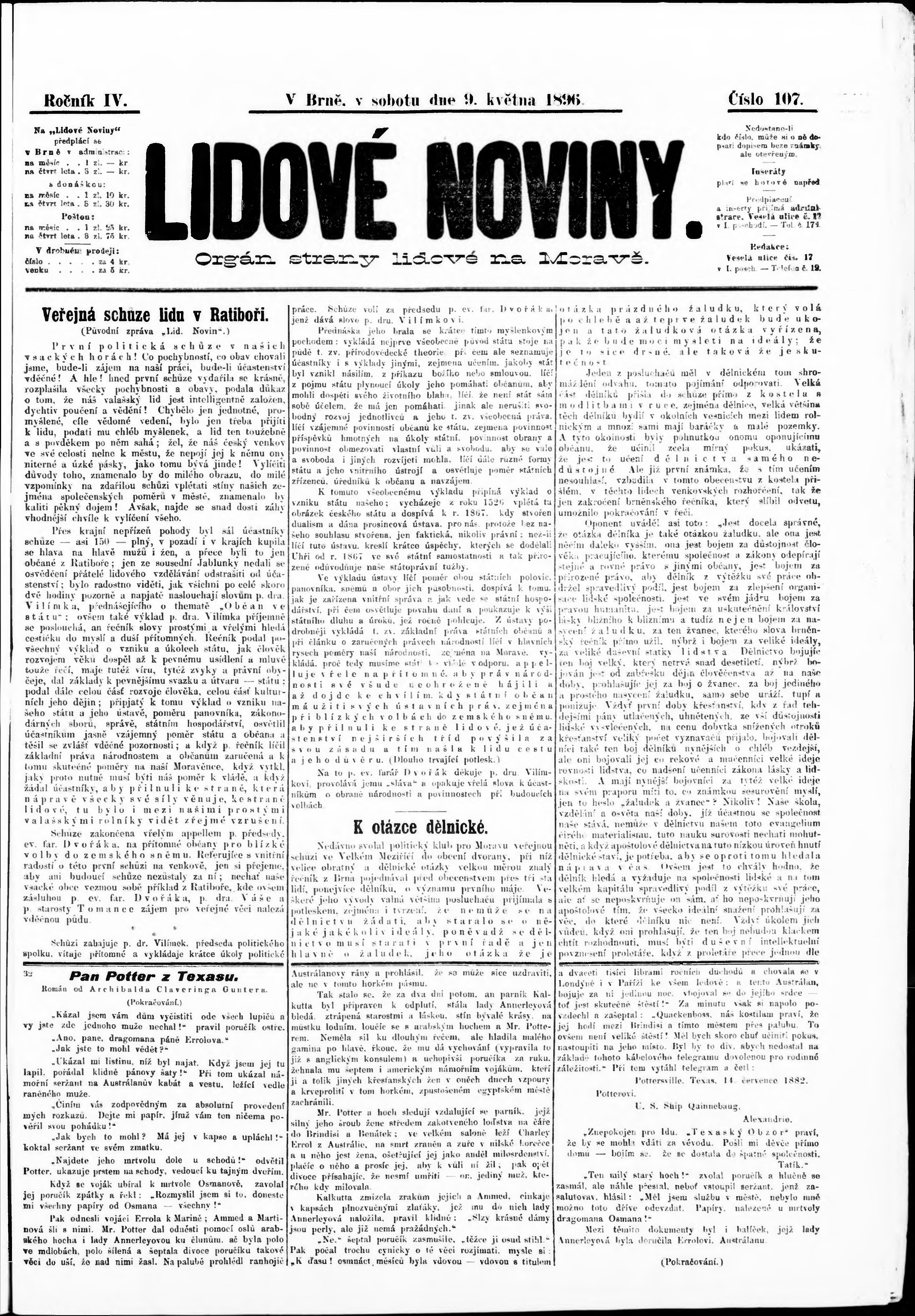 * Datum vydání výtisku: 9.5.1896 Číslo výtisku: 107 Poznámky k výtisku: s. 3 - 4 nekvalitní předloha;