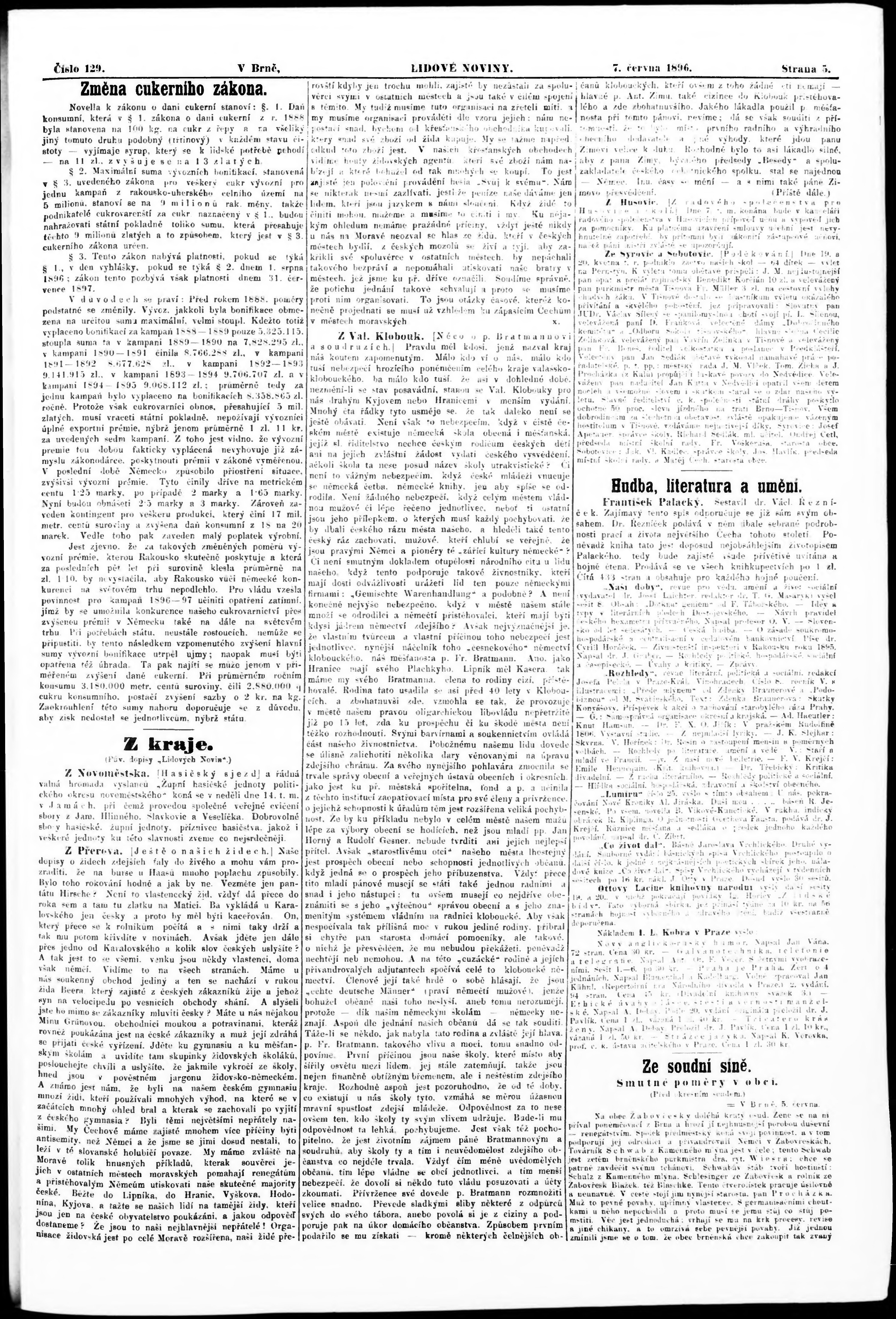 * Datum vydání výtisku: 7.6.1896 Číslo výtisku: 129 Poznámky k výtisku: nekvalitní předloha;