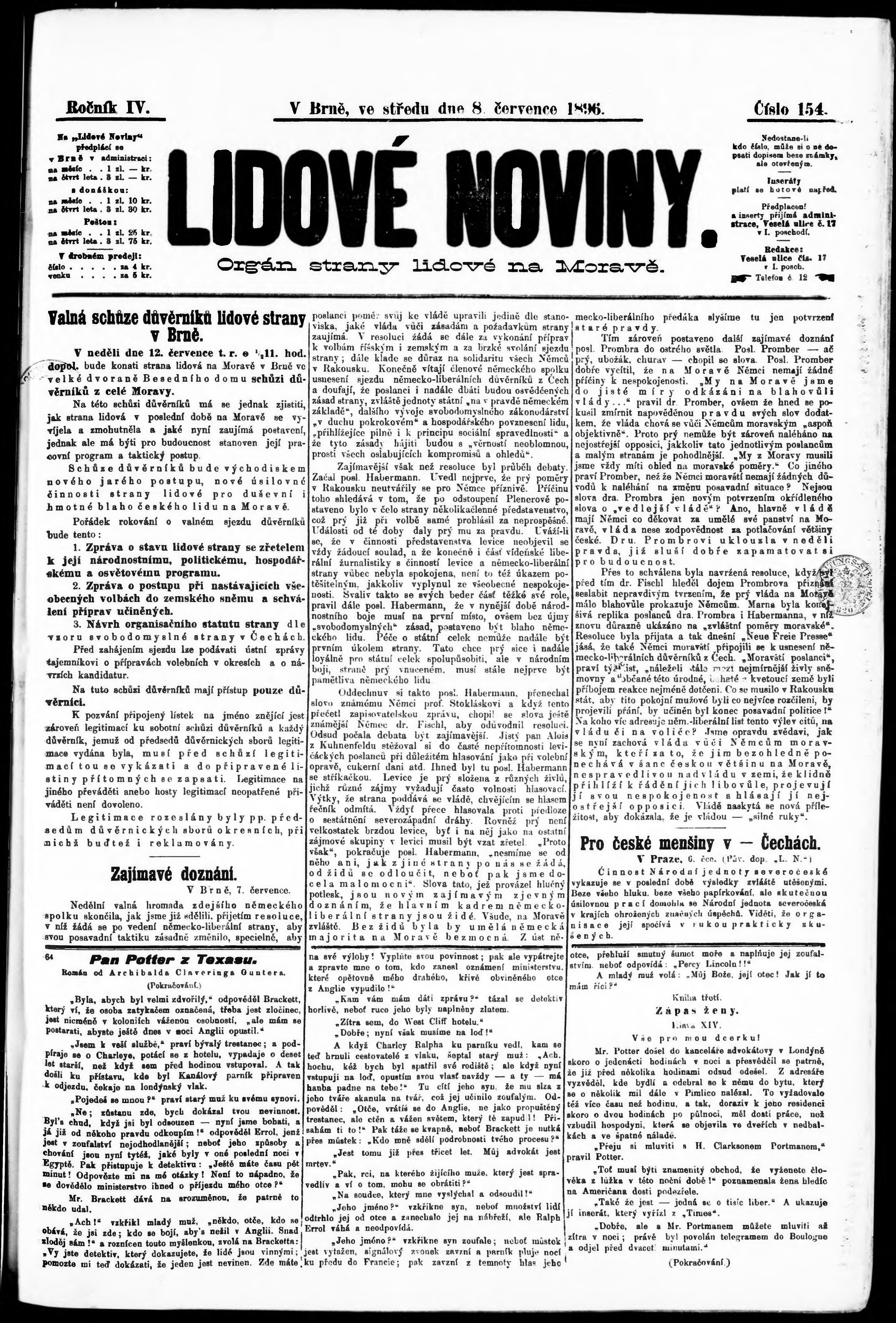 * Datum vydání výtisku: 8.7.1896 Číslo výtisku: 154