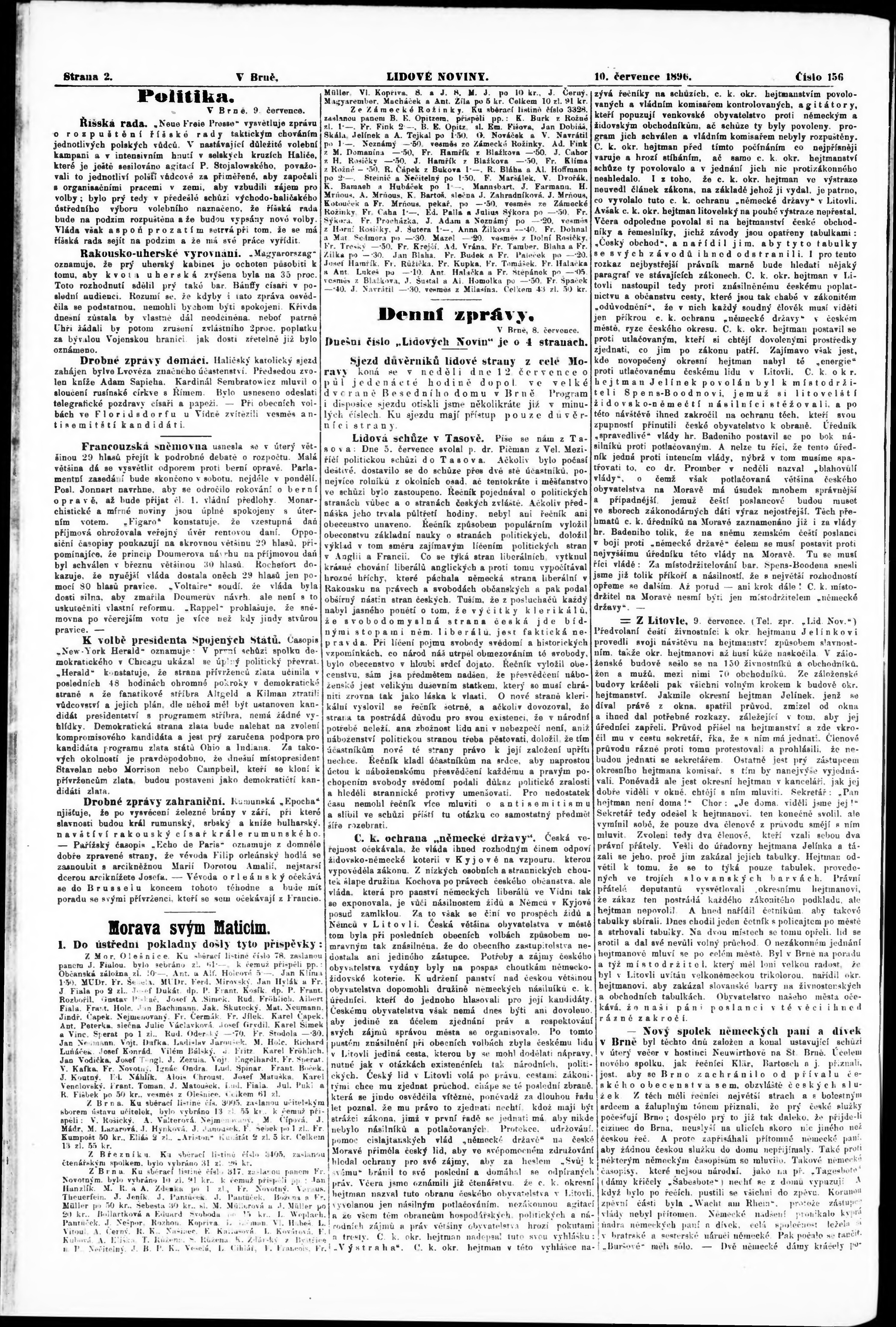 * Datum vydání výtisku: 10.7.1896 Číslo výtisku: 156