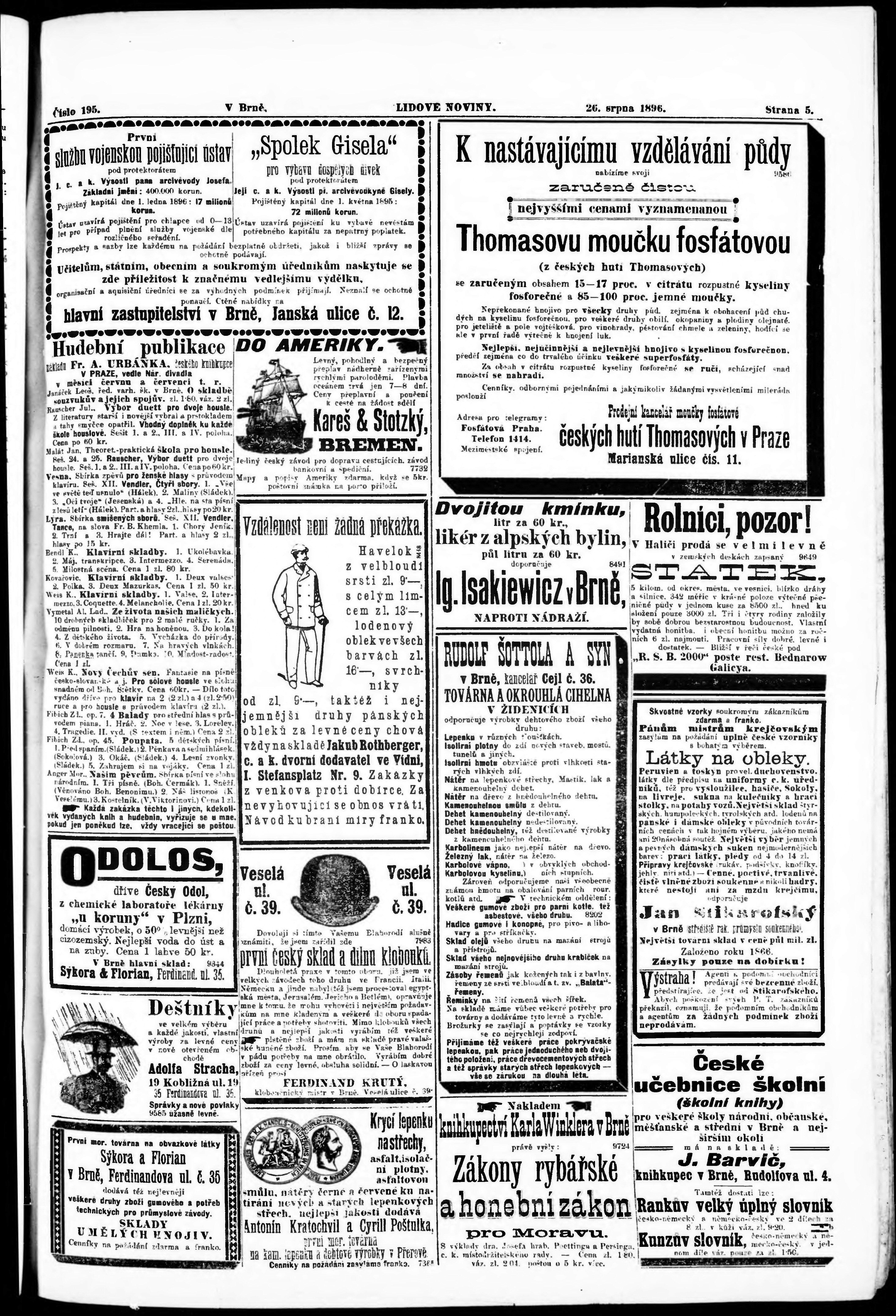 * Datum vydání výtisku: 26.8.1896 Číslo výtisku: 195 Poznámky k výtisku: s. (1) poškozená předloha;
