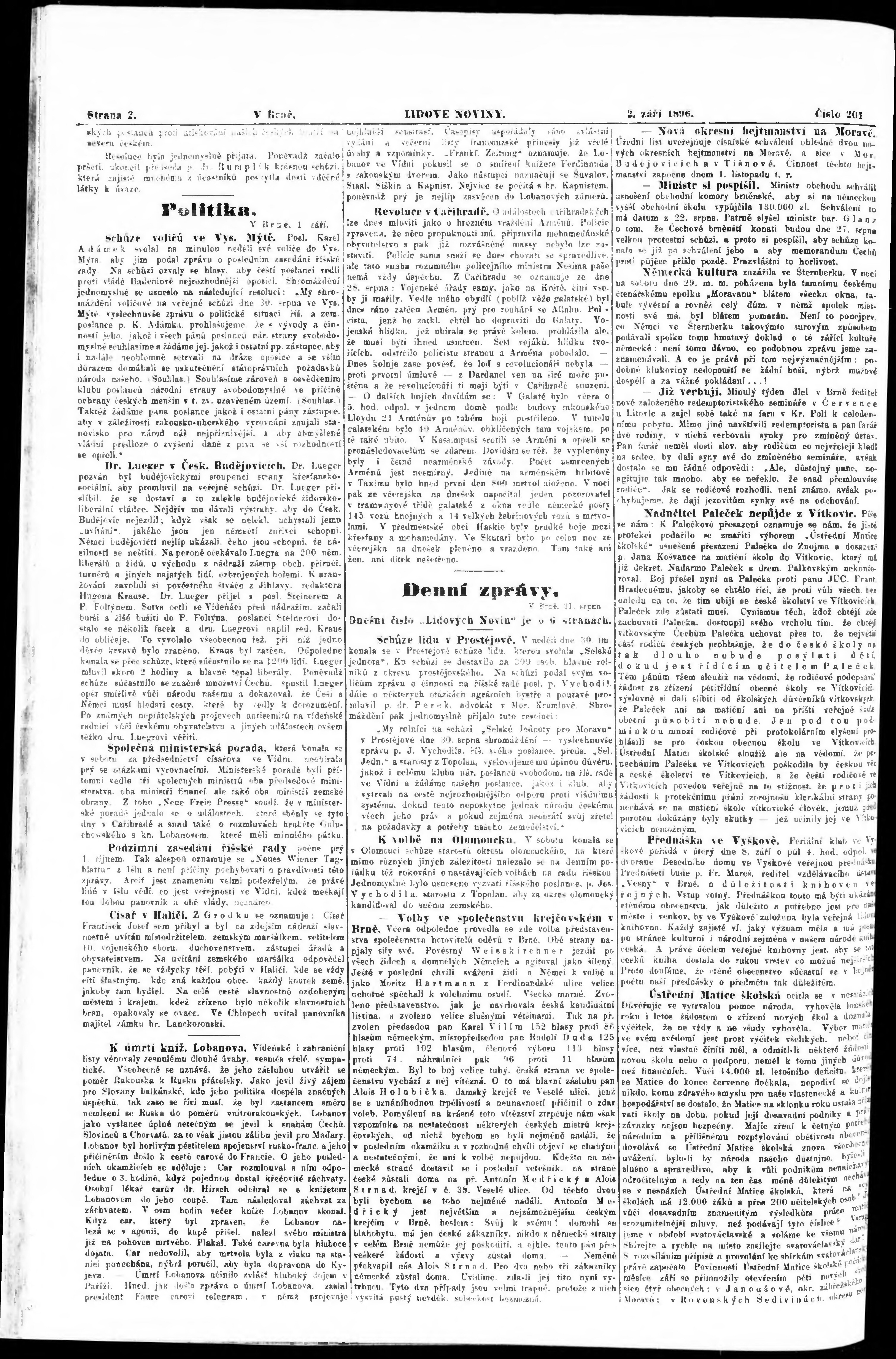 * Datum vydání výtisku: 2.9.1896 Číslo výtisku: 201 Poznámky k výtisku: nekvalitní a poškozená předloha;