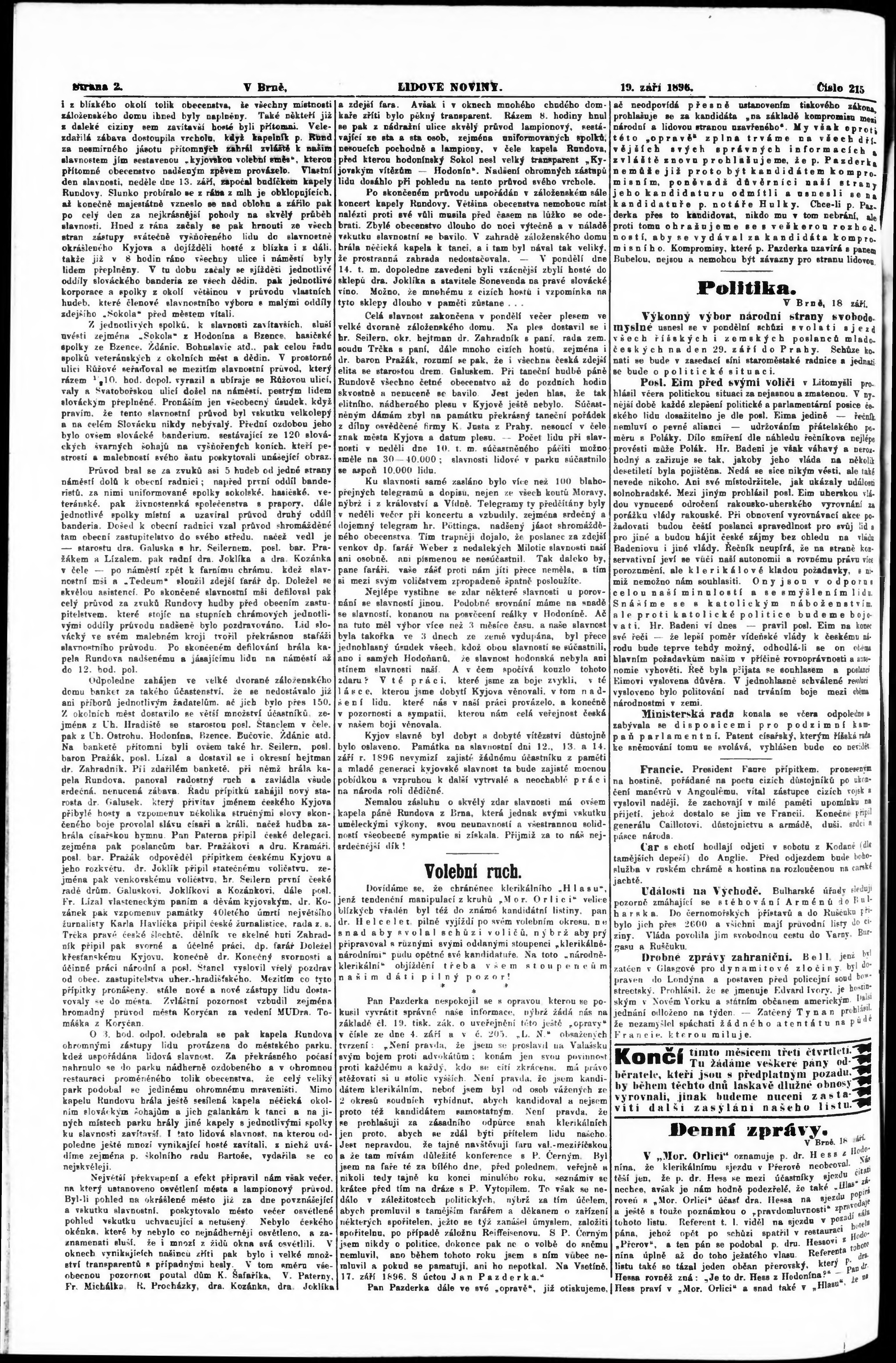 * Datum vydání výtisku: 19.9.1896 Číslo výtisku: 215 Poznámky k výtisku: nekvalitní předloha;