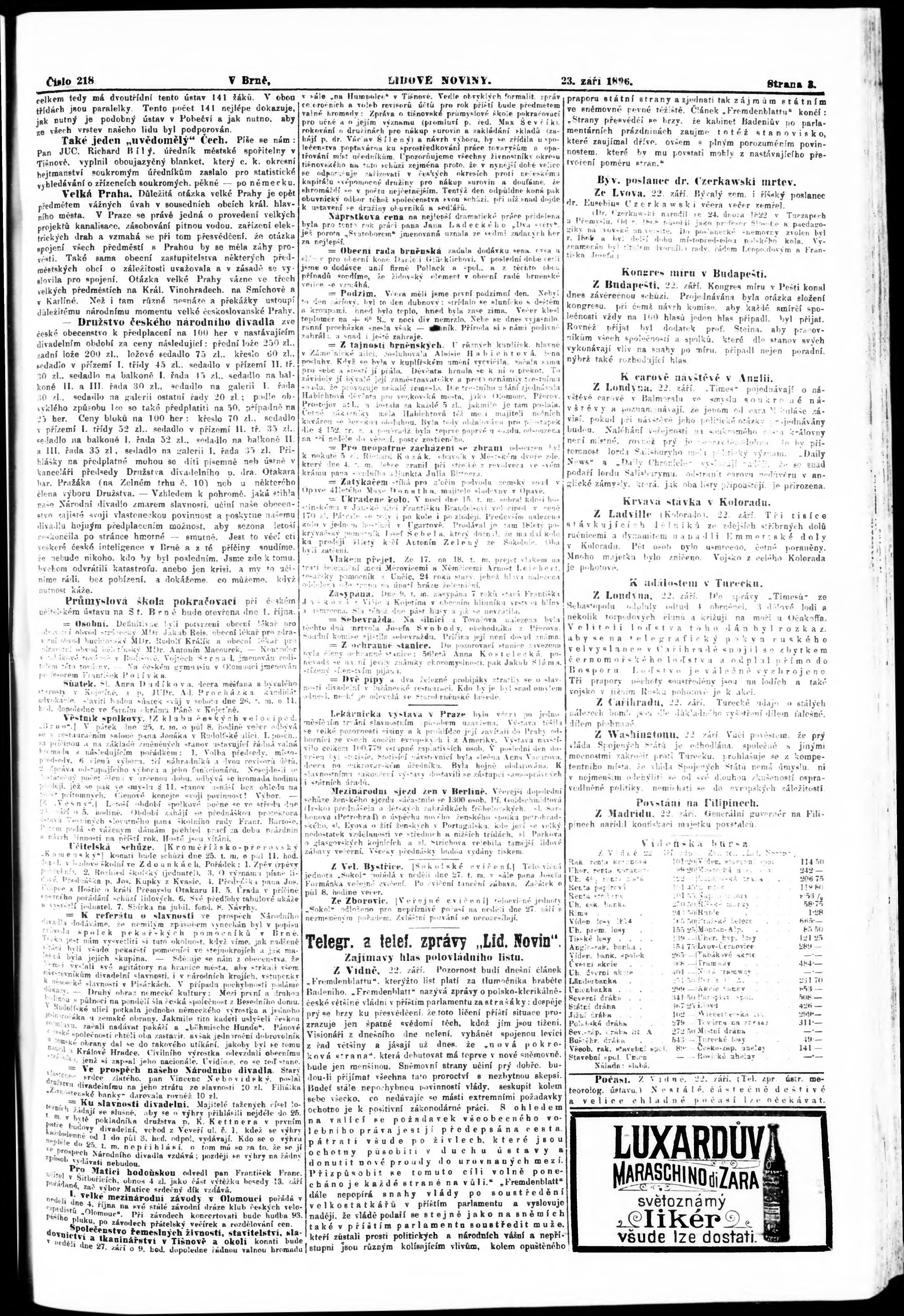 * Datum vydání výtisku: 23.9.1896 Číslo výtisku: 218 Poznámky k výtisku: s. 3 nekvalitní předloha;