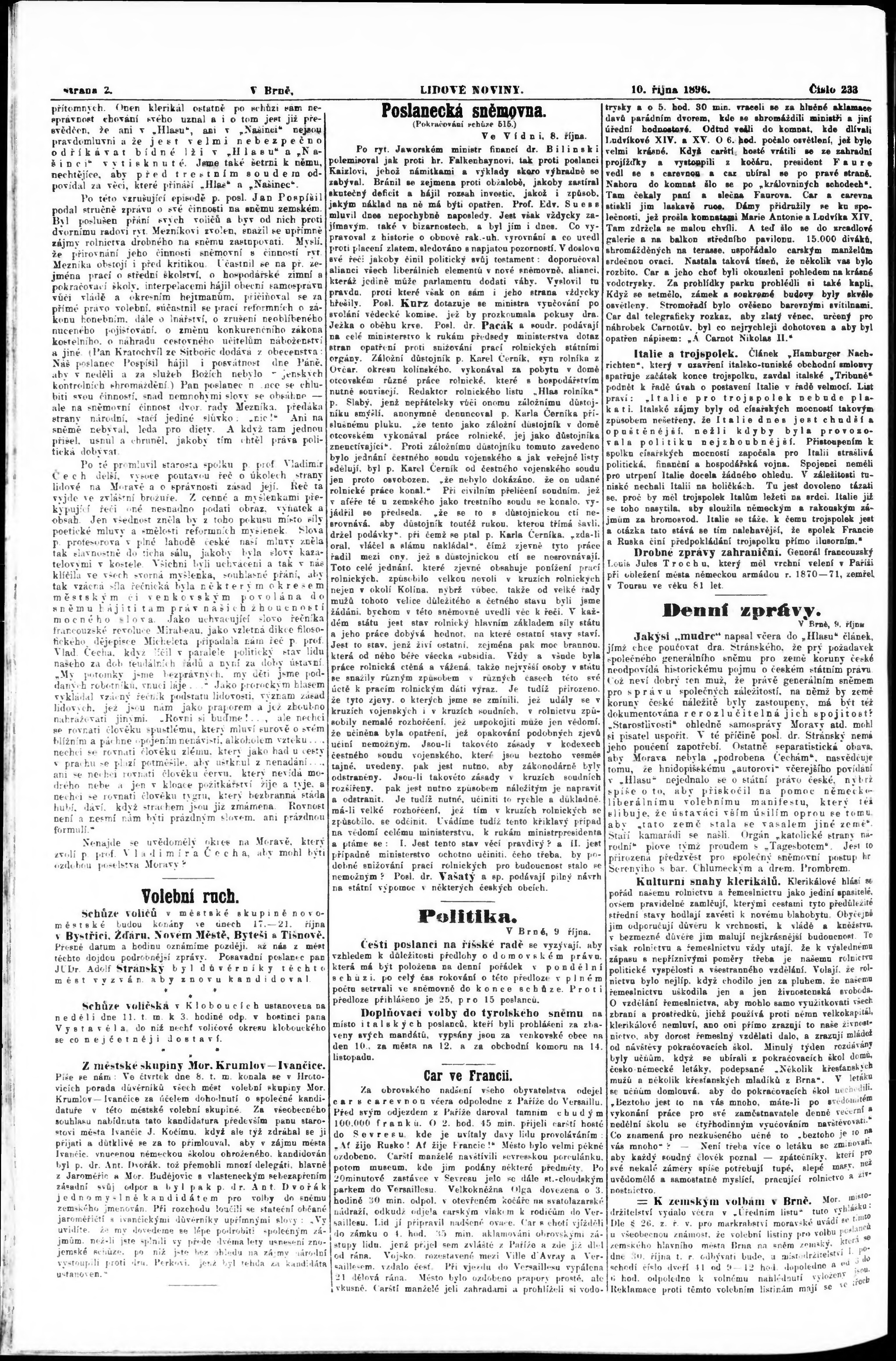 * Datum vydání výtisku: 10.10.1896 Číslo výtisku: 233 Poznámky k výtisku: nekvalitní předloha;