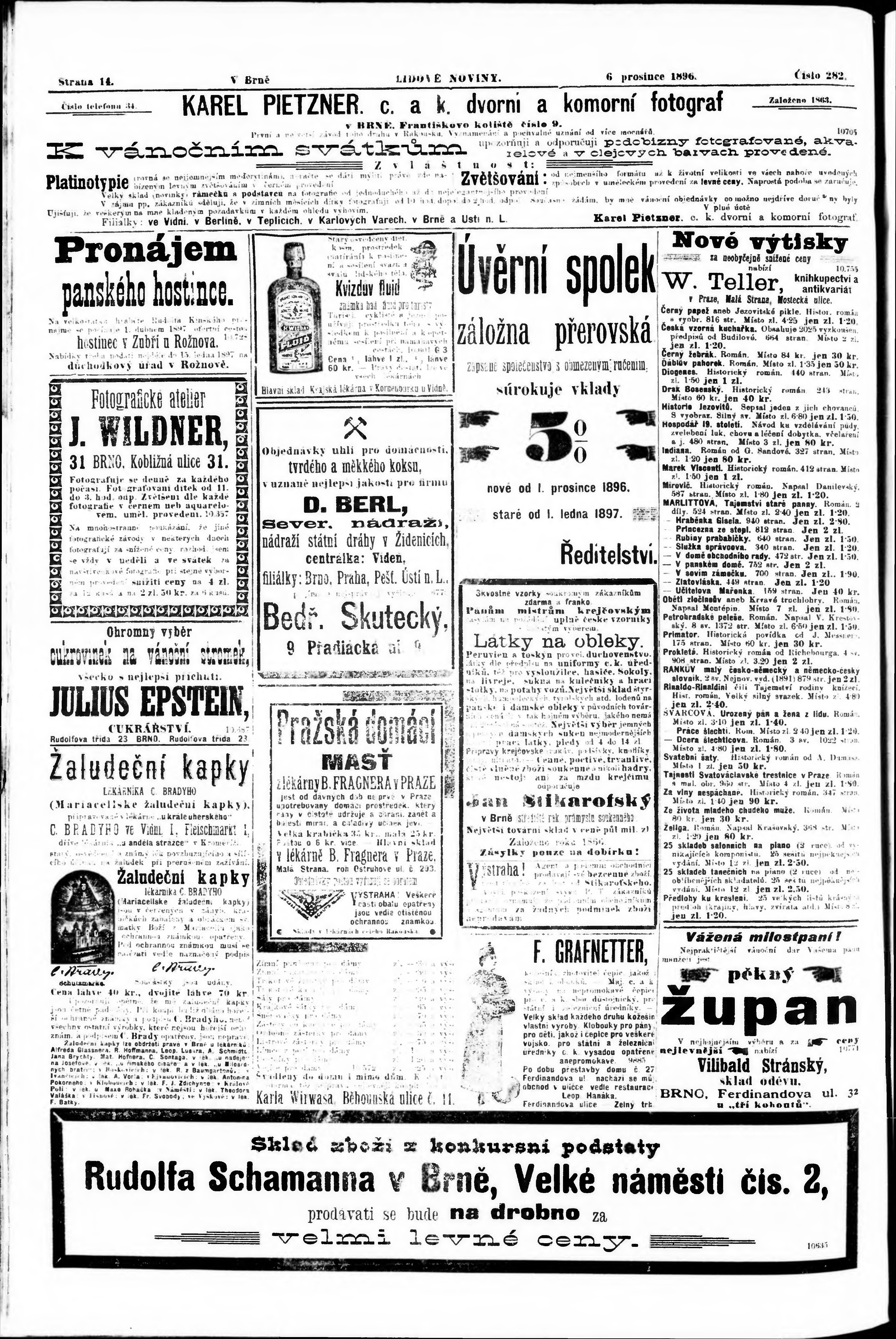 * Datum vydání výtisku: 6.12.1896 Číslo výtisku: 282 Poznámky k výtisku: nekvalitní předloha;