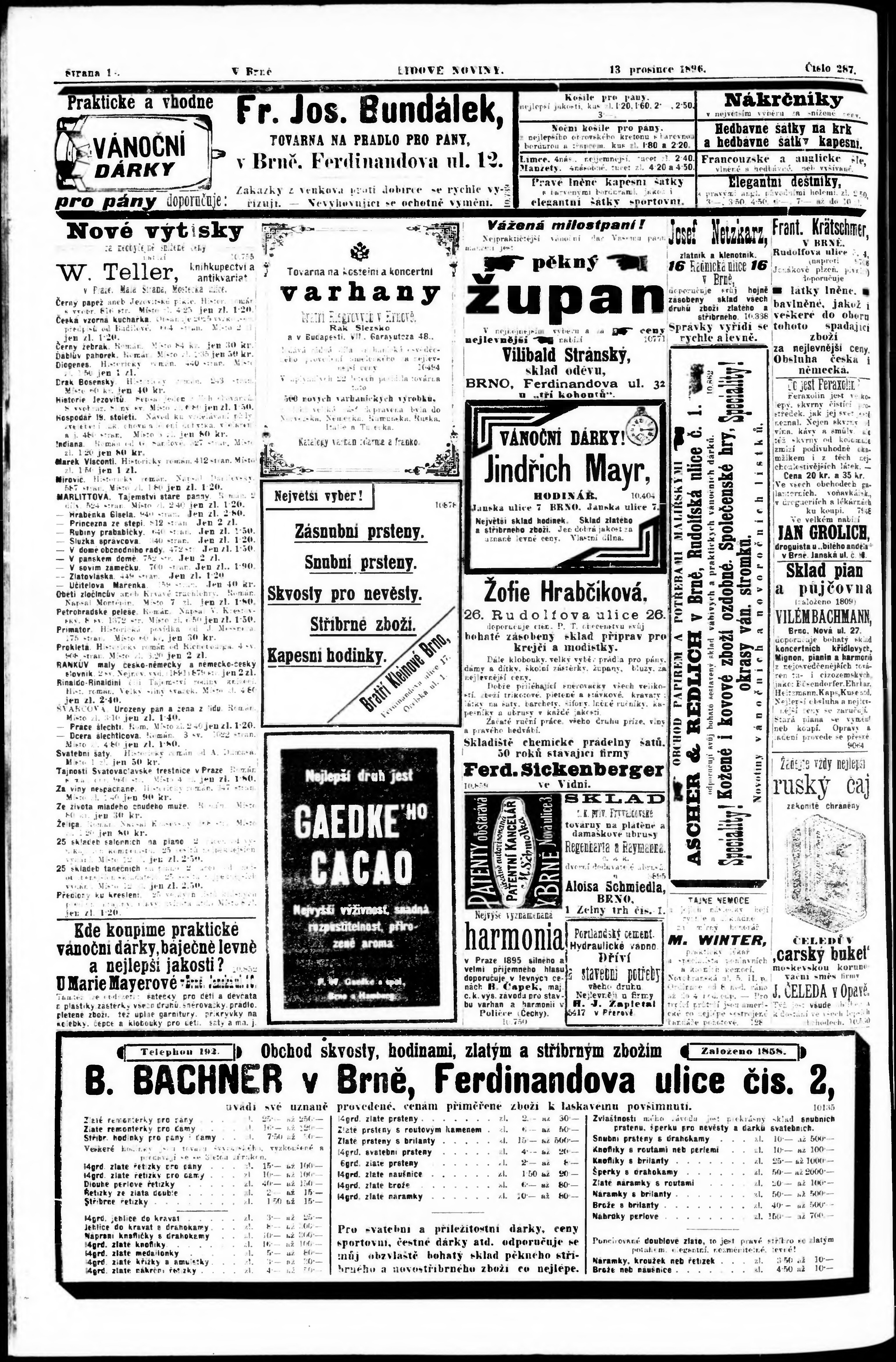 * Datum vydání výtisku: 13.12.1896 Číslo výtisku: 287 Poznámky k výtisku: nekvalitní předloha;