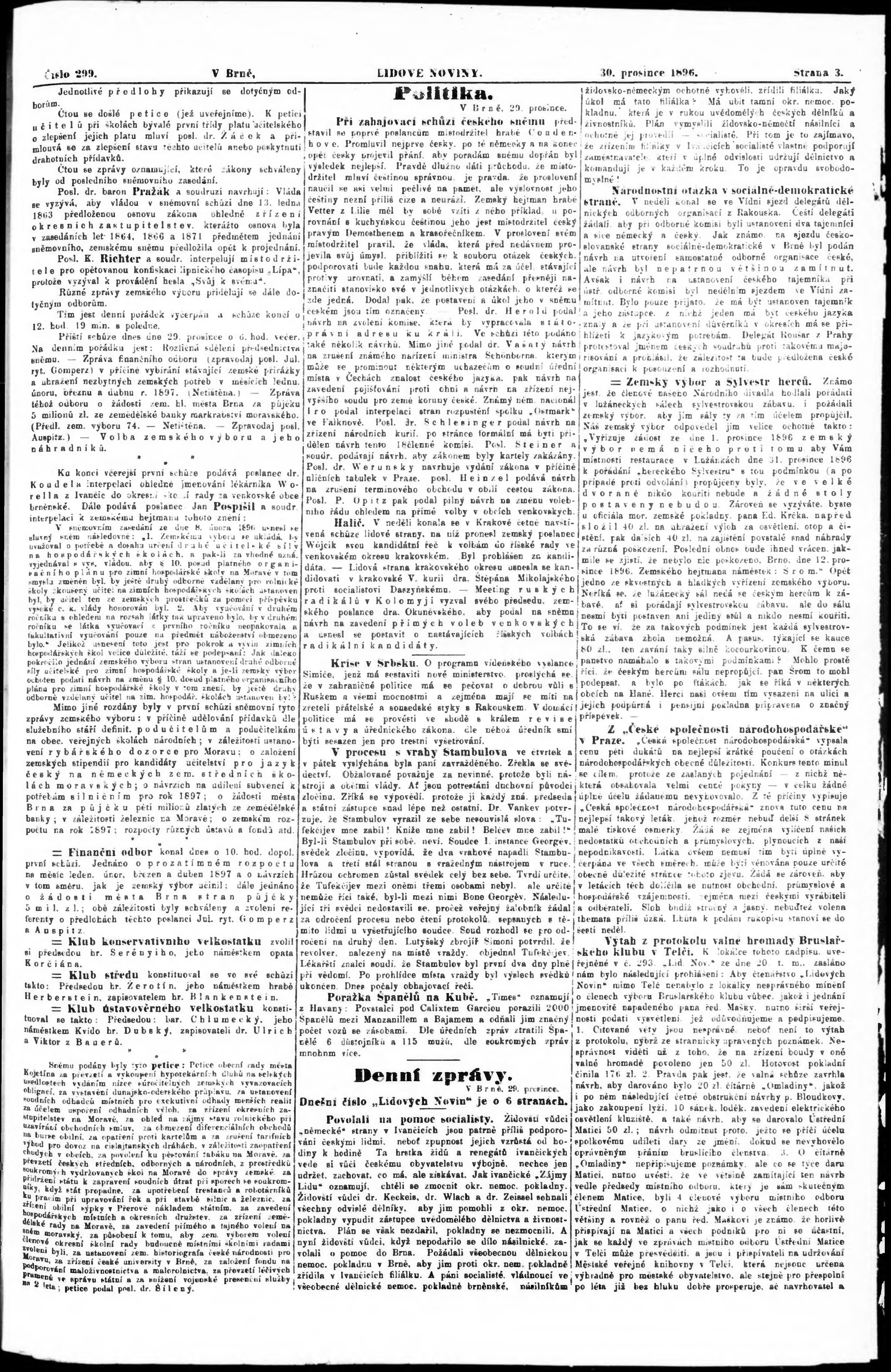 * Datum vydání výtisku: 30.12.1896 Číslo výtisku: 299 Poznámky k výtisku: nekvalitní předloha;