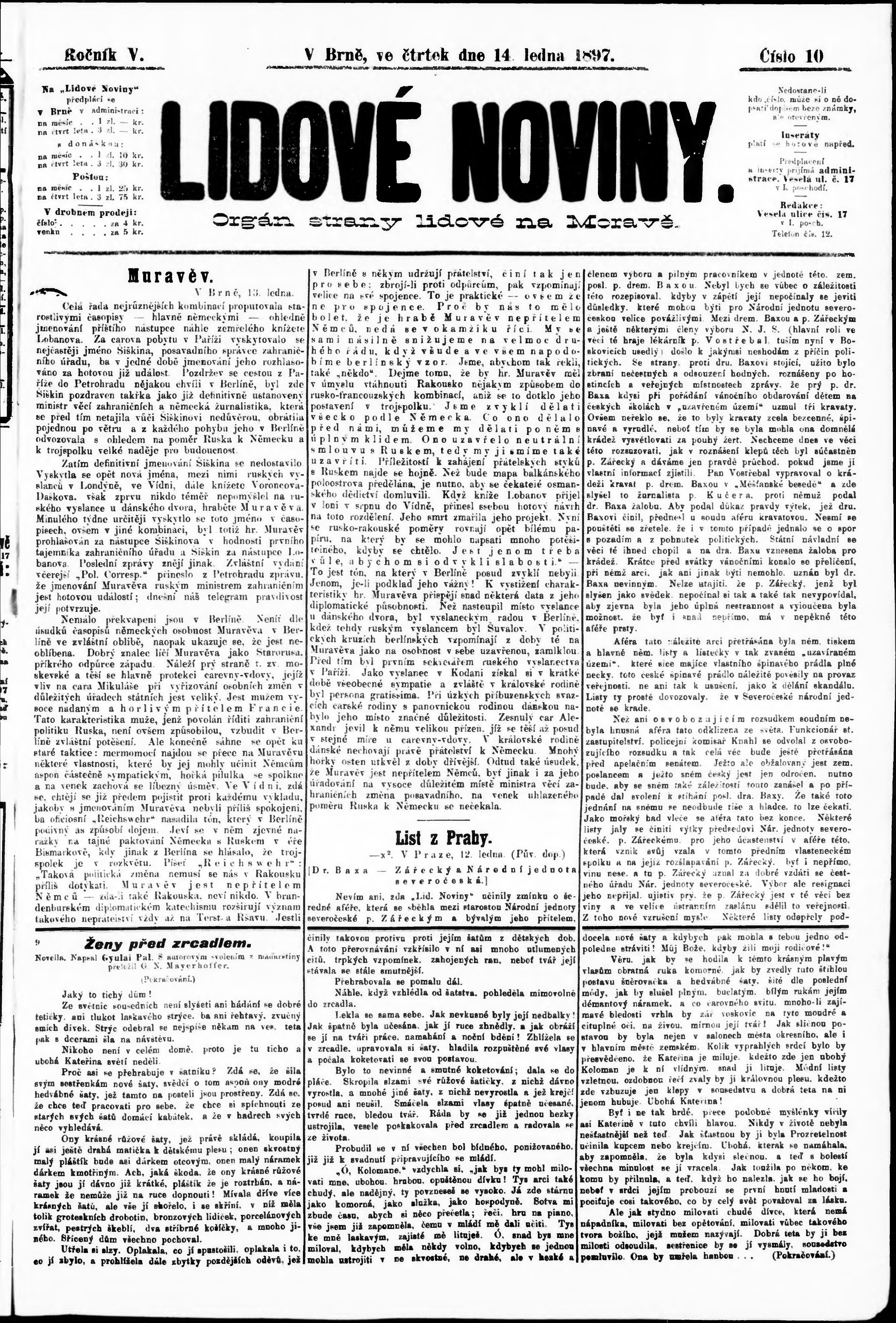 * Datum vydání výtisku: 14.1.1897 Číslo výtisku: 10 Poznámky k výtisku: poškozená předloha;
