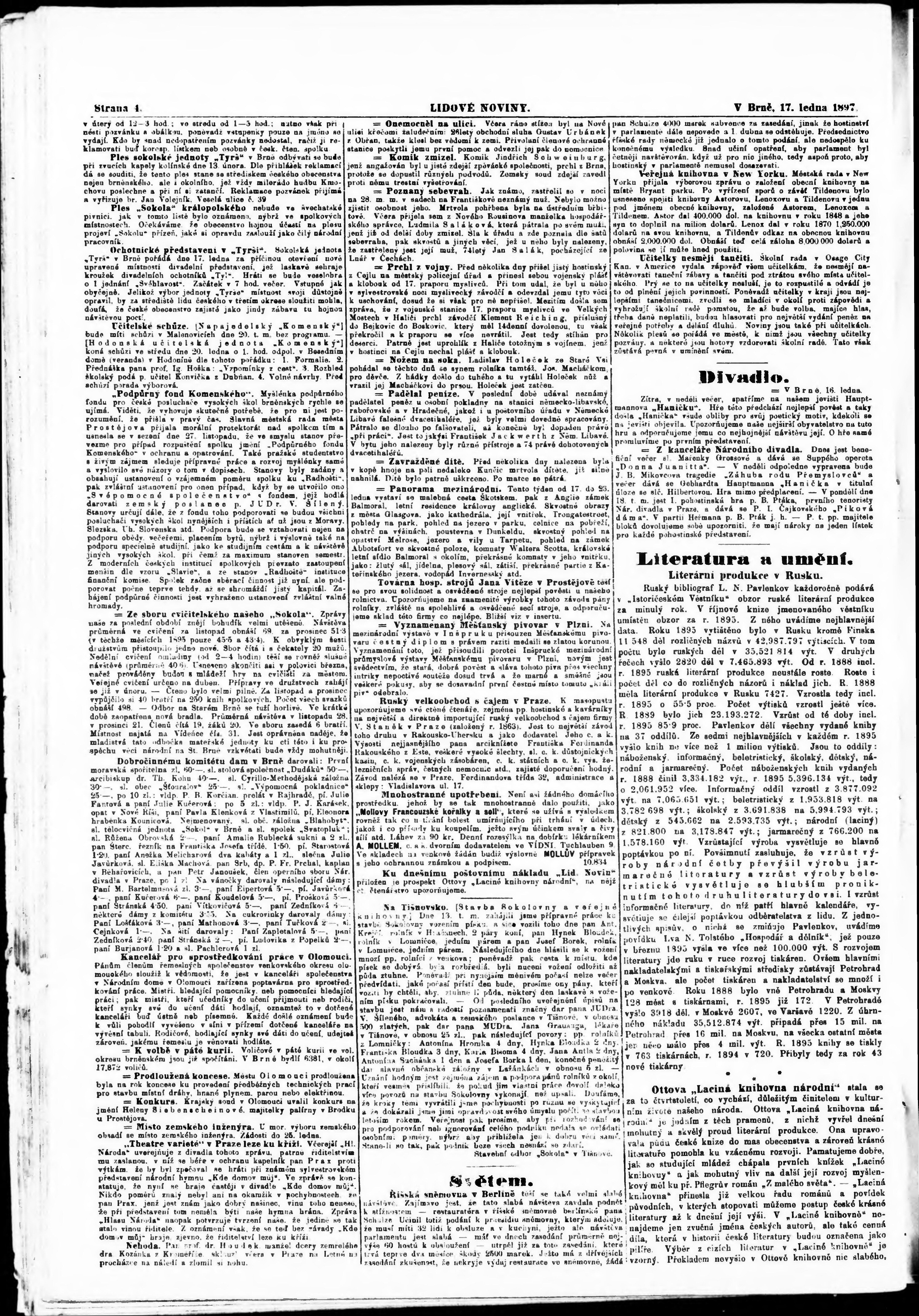 * Datum vydání výtisku: 17.1.1897 Číslo výtisku: 13 Poznámky k výtisku: s. 12 nekvalitní předloha;