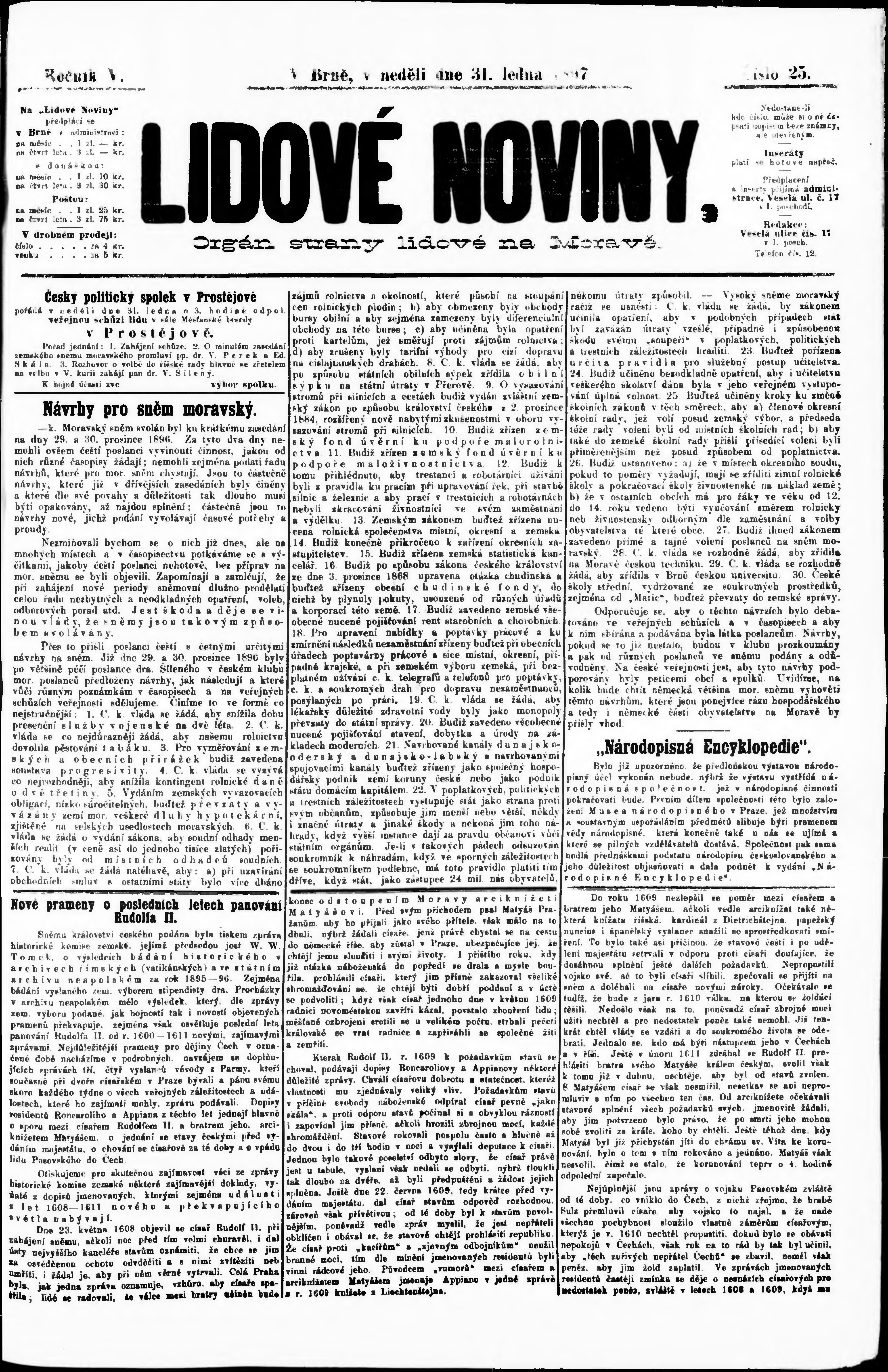 * Datum vydání výtisku: 31.1.1897 Číslo výtisku: 25
