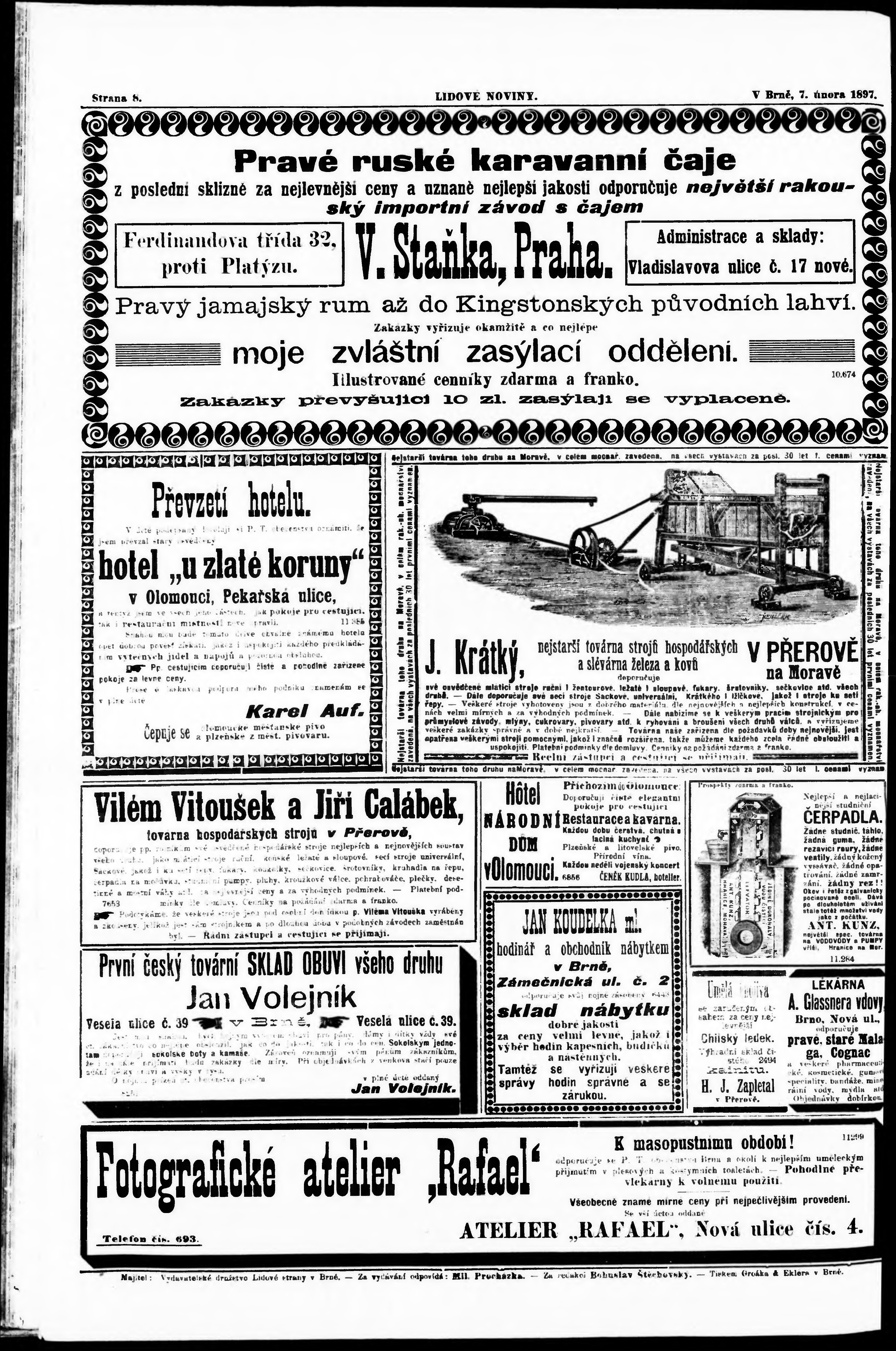 * Datum vydání výtisku: 7.2.1897 Číslo výtisku: 30