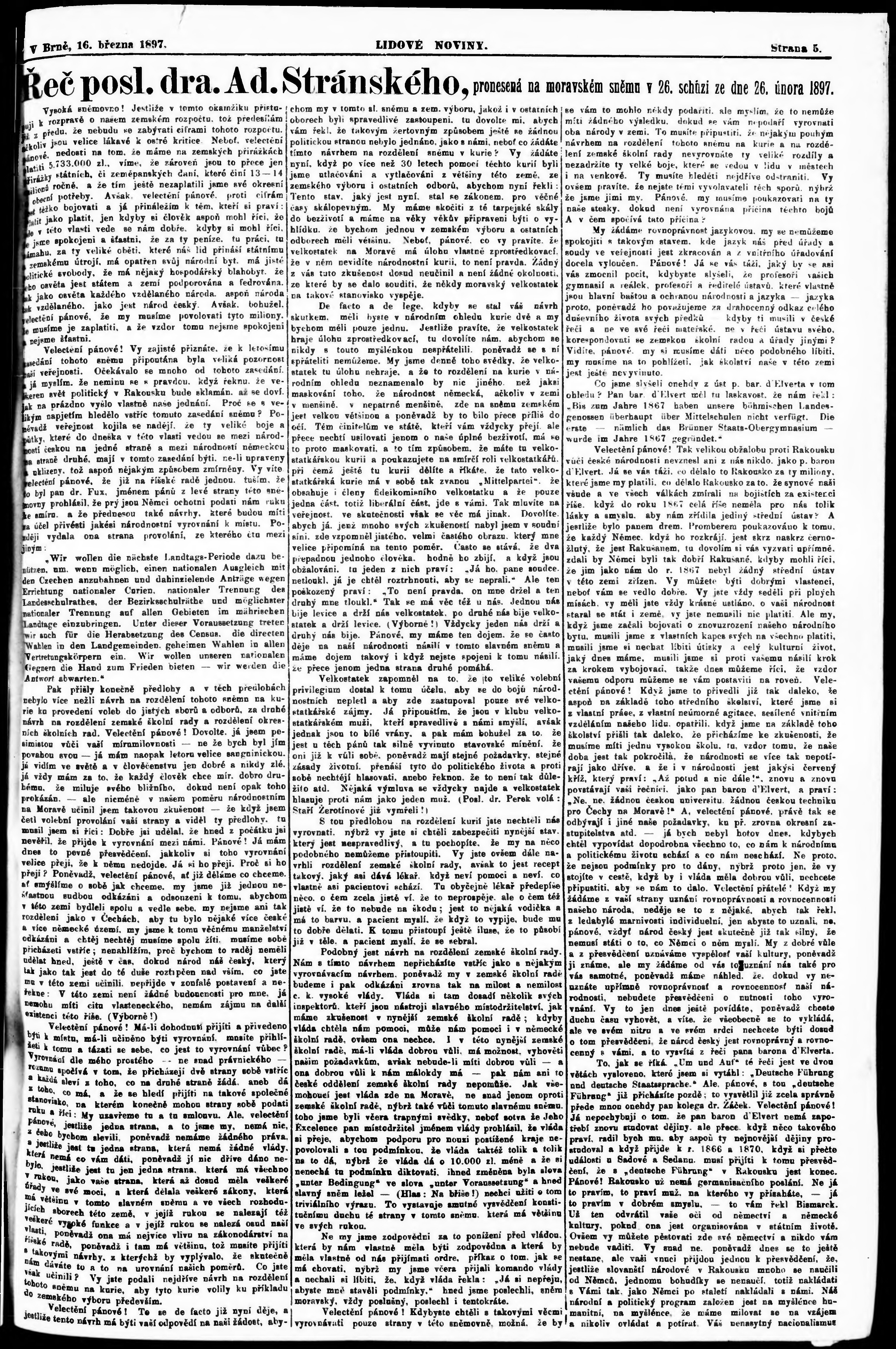 * Datum vydání výtisku: 16.3.1897 Číslo výtisku: 61