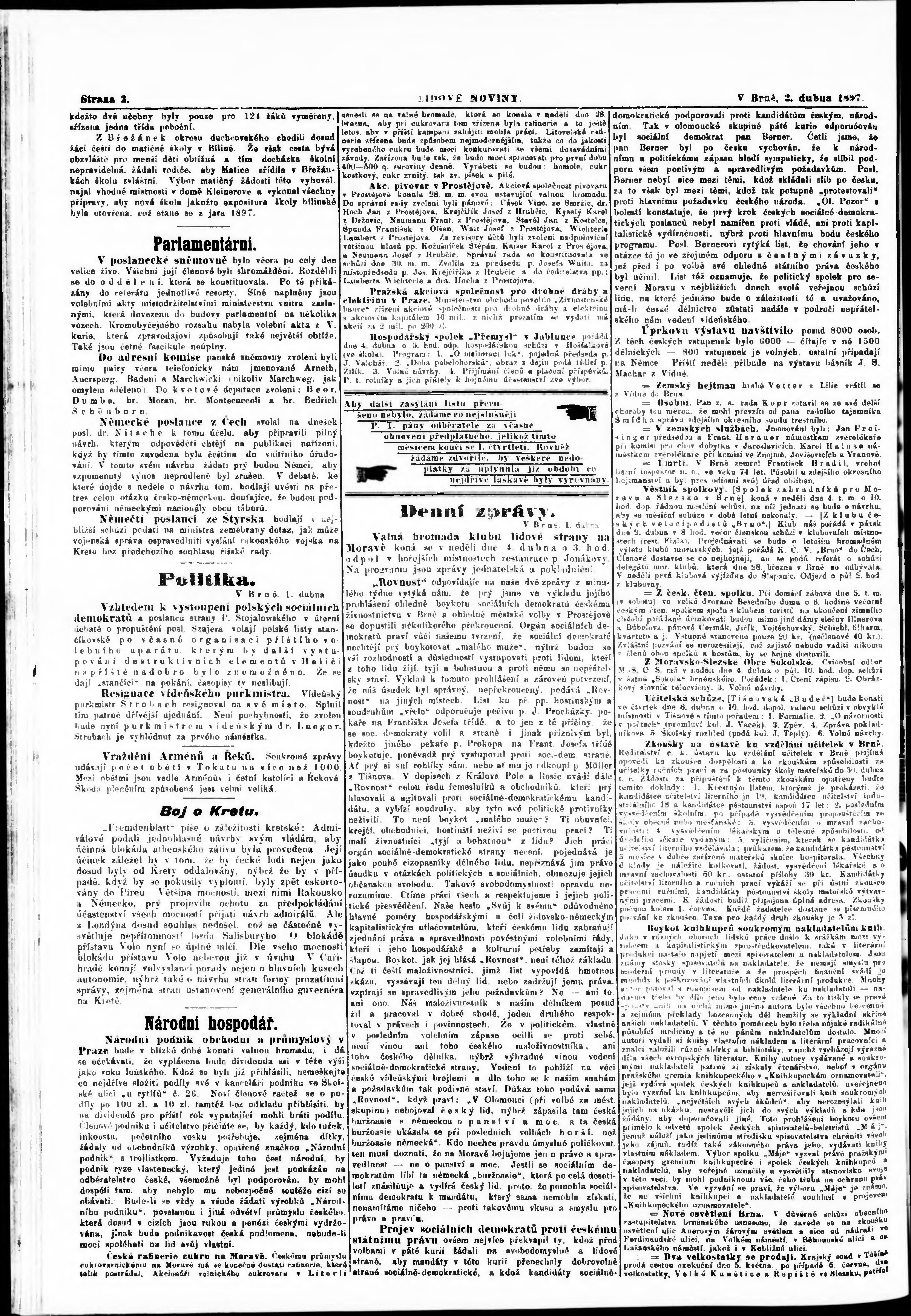 * Datum vydání výtisku: 2.4.1897 Číslo výtisku: 75 Poznámky k výtisku: s. 3 nekvalitní předloha;