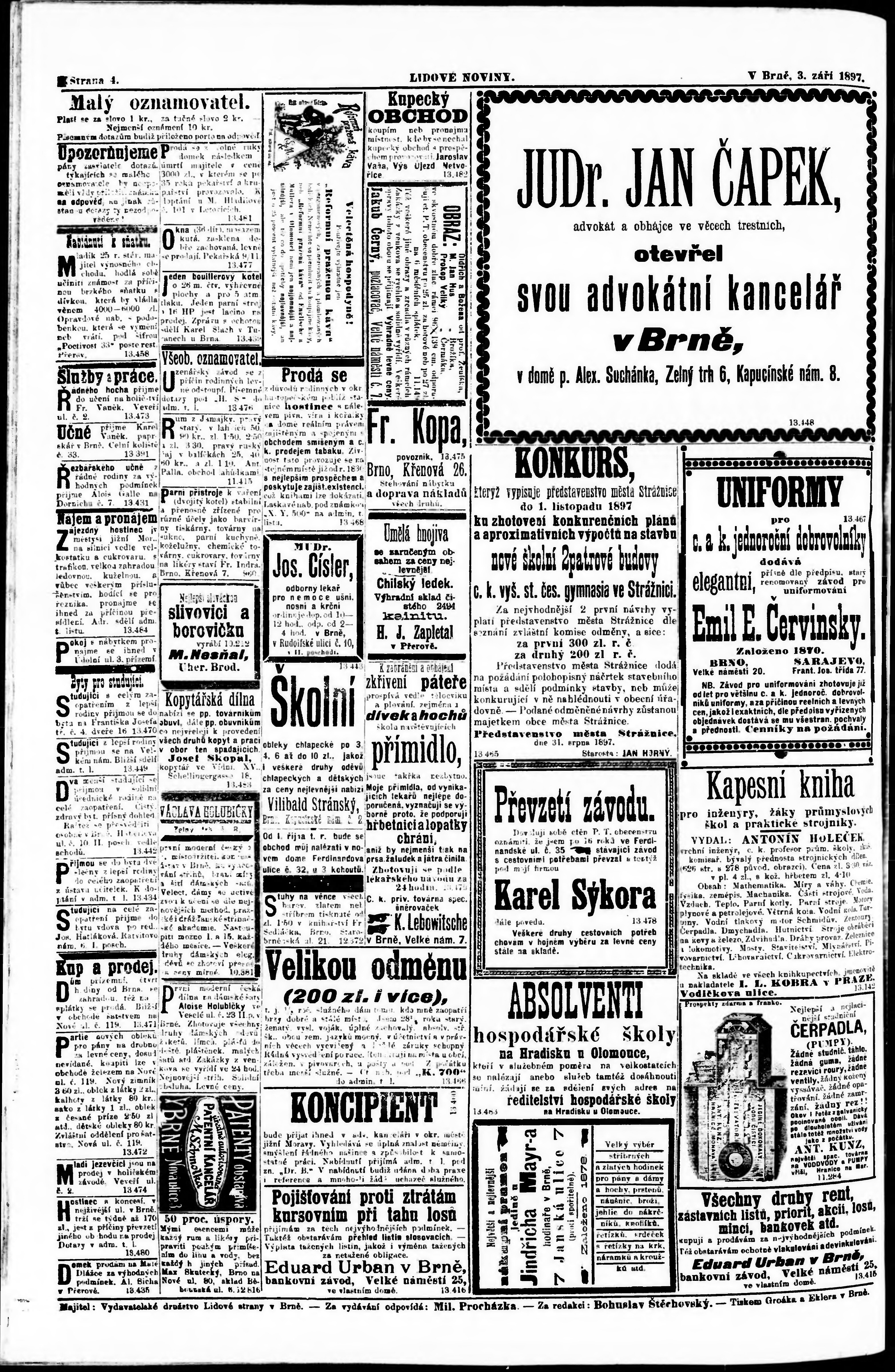 * Datum vydání výtisku: 3.9.1897 Číslo výtisku: 200
