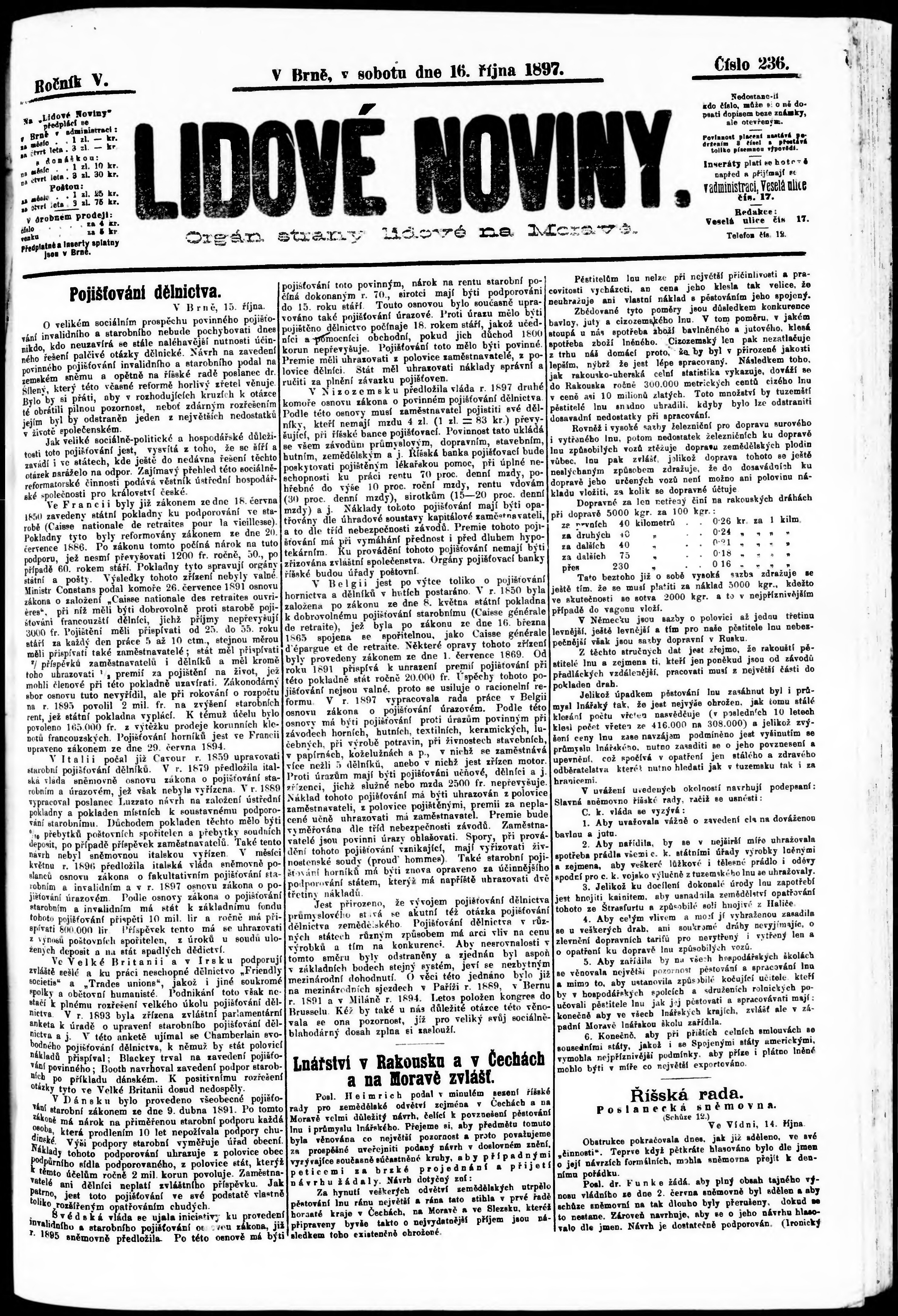 * Datum vydání výtisku: 16.10.1897 Číslo výtisku: 236 Poznámky k výtisku: s. 4 nekvalitní předloha;