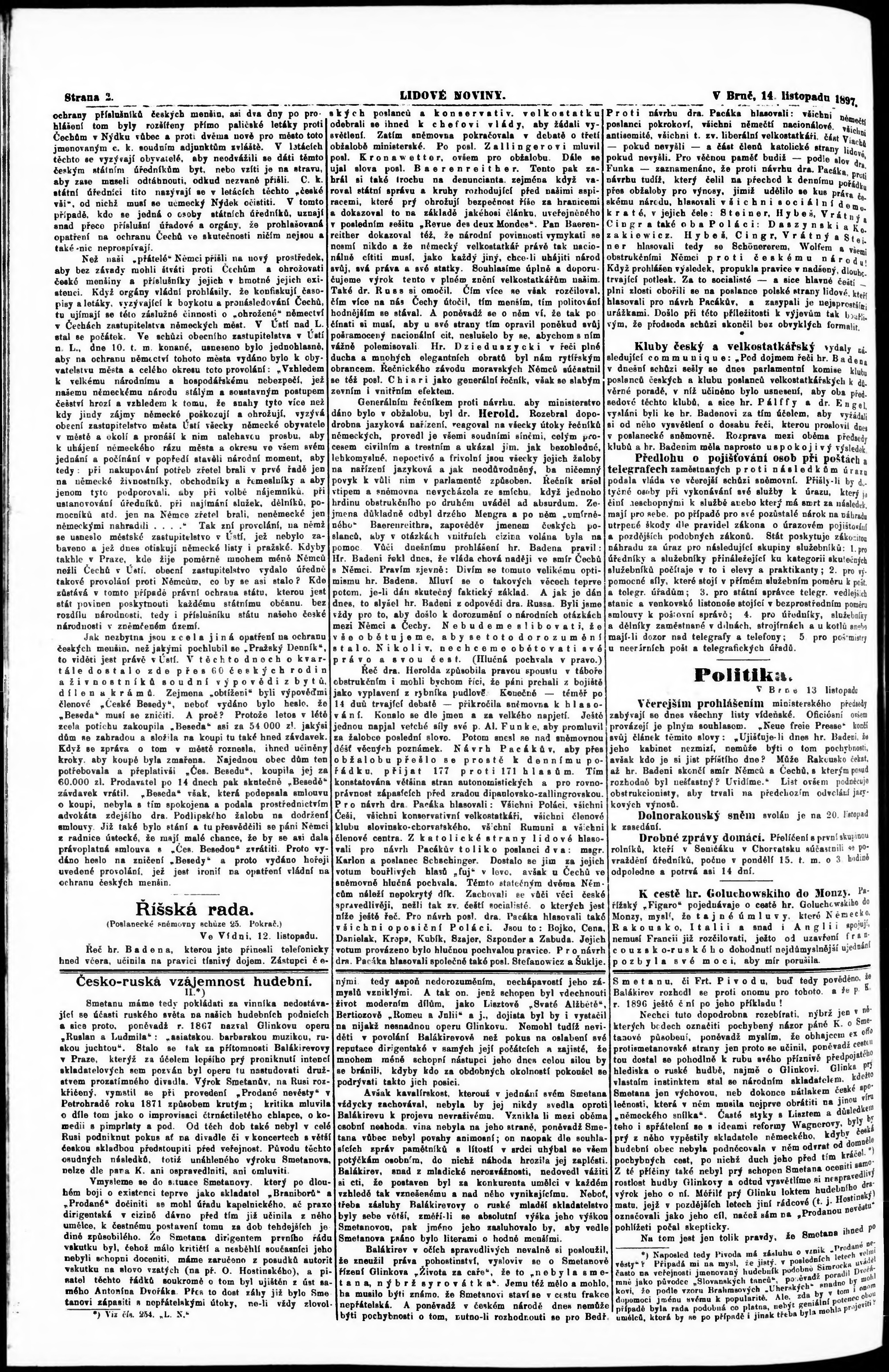 * Datum vydání výtisku: 14.11.1897 Číslo výtisku: 260