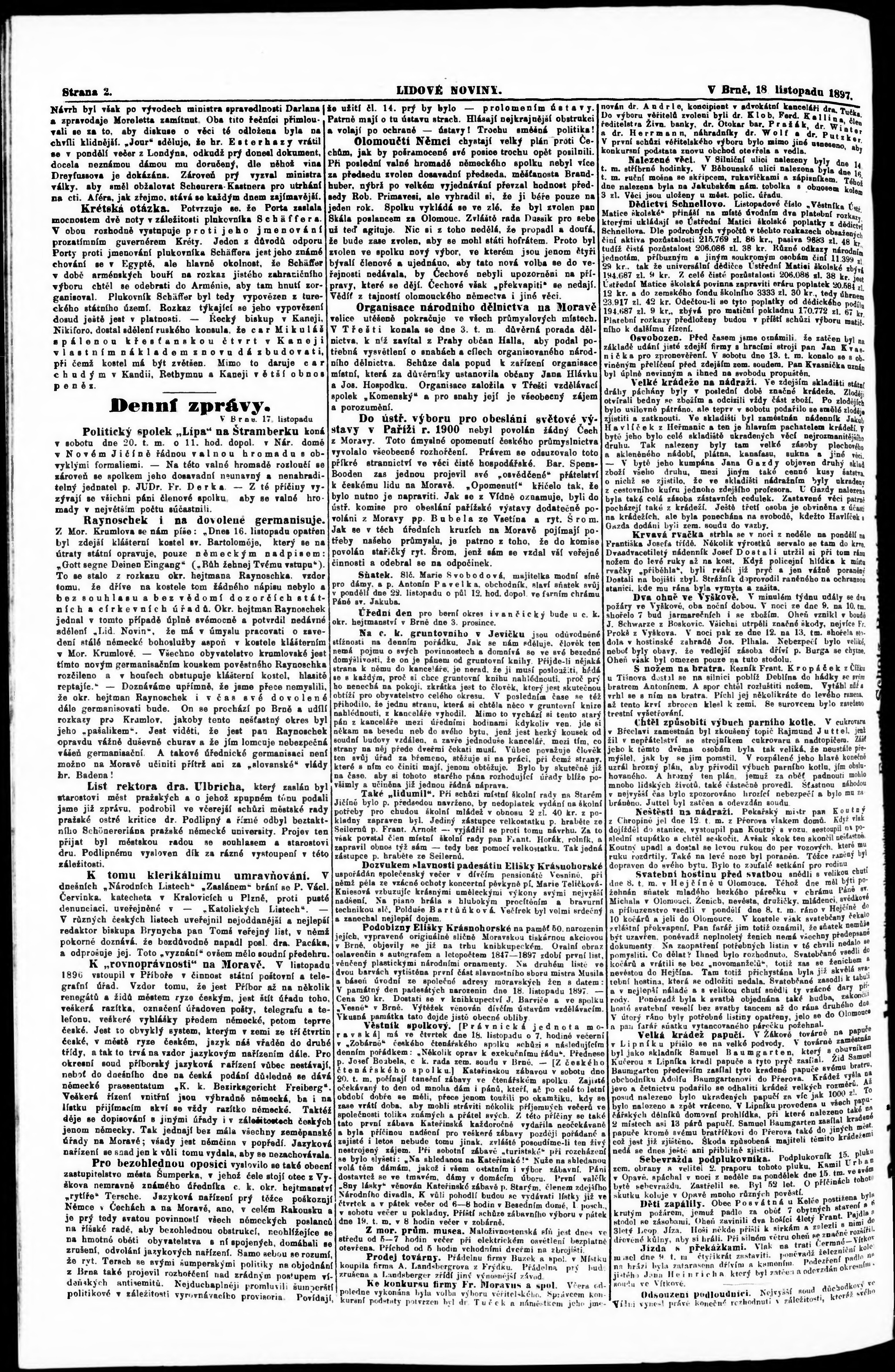 * Datum vydání výtisku: 18.11.1897 Číslo výtisku: 263