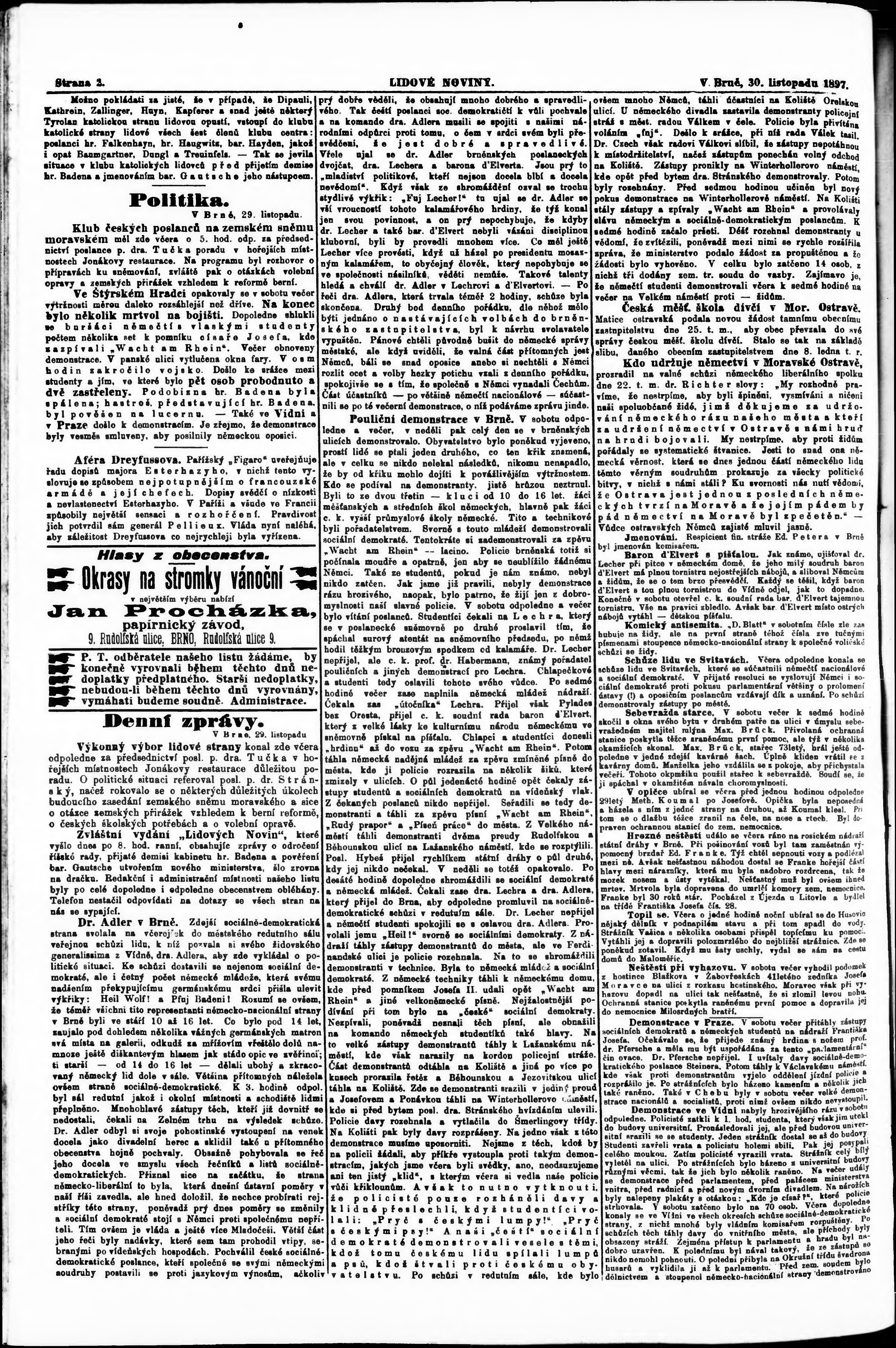* Datum vydání výtisku: 30.11.1897 Číslo výtisku: 273