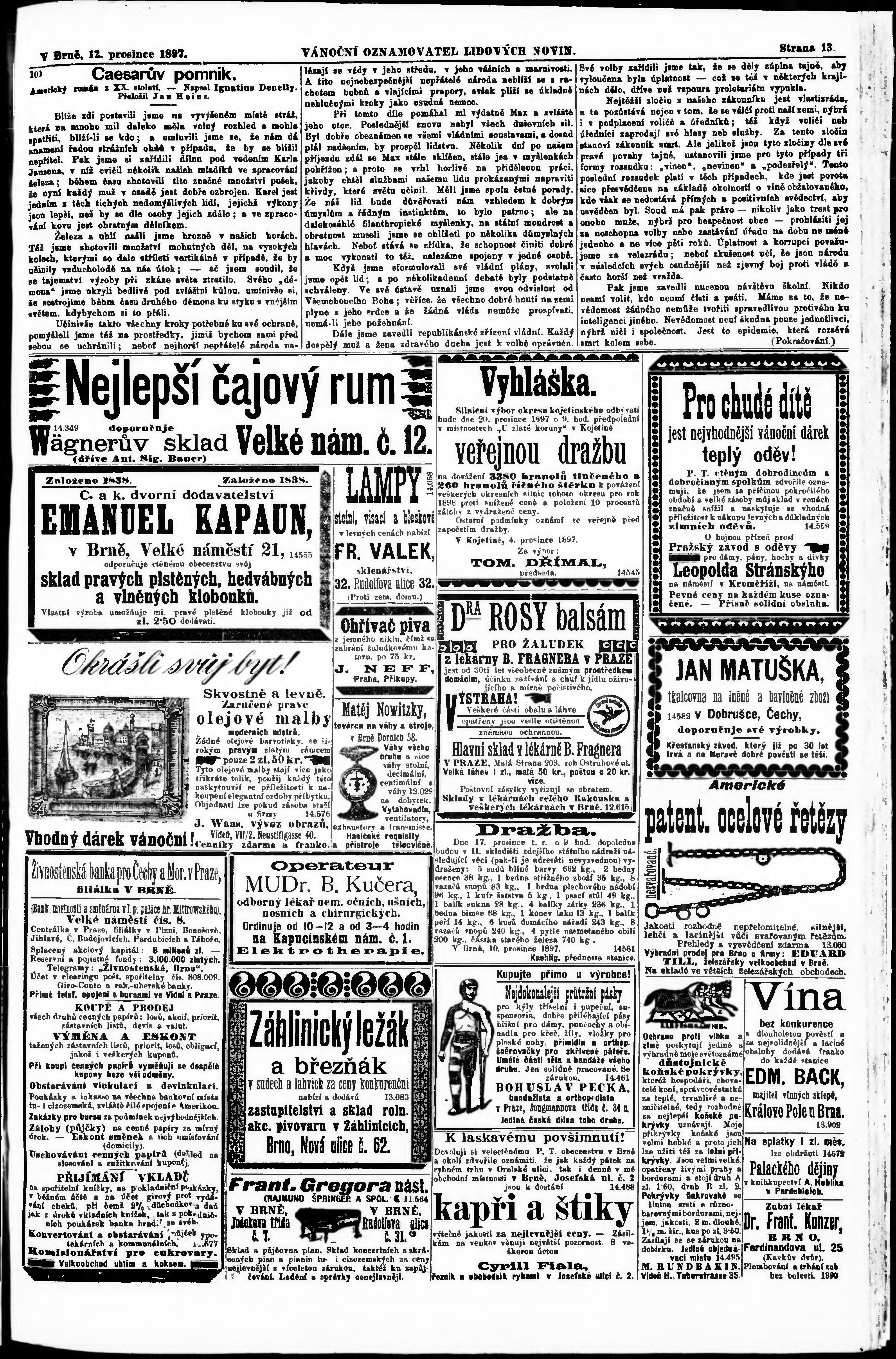 * Datum vydání výtisku: 12.12.1897 Číslo výtisku: 283 Poznámky k výtisku: s. 8 - 9 poškozená předloha; s. 12 nekvalitní a poškozená předloha;