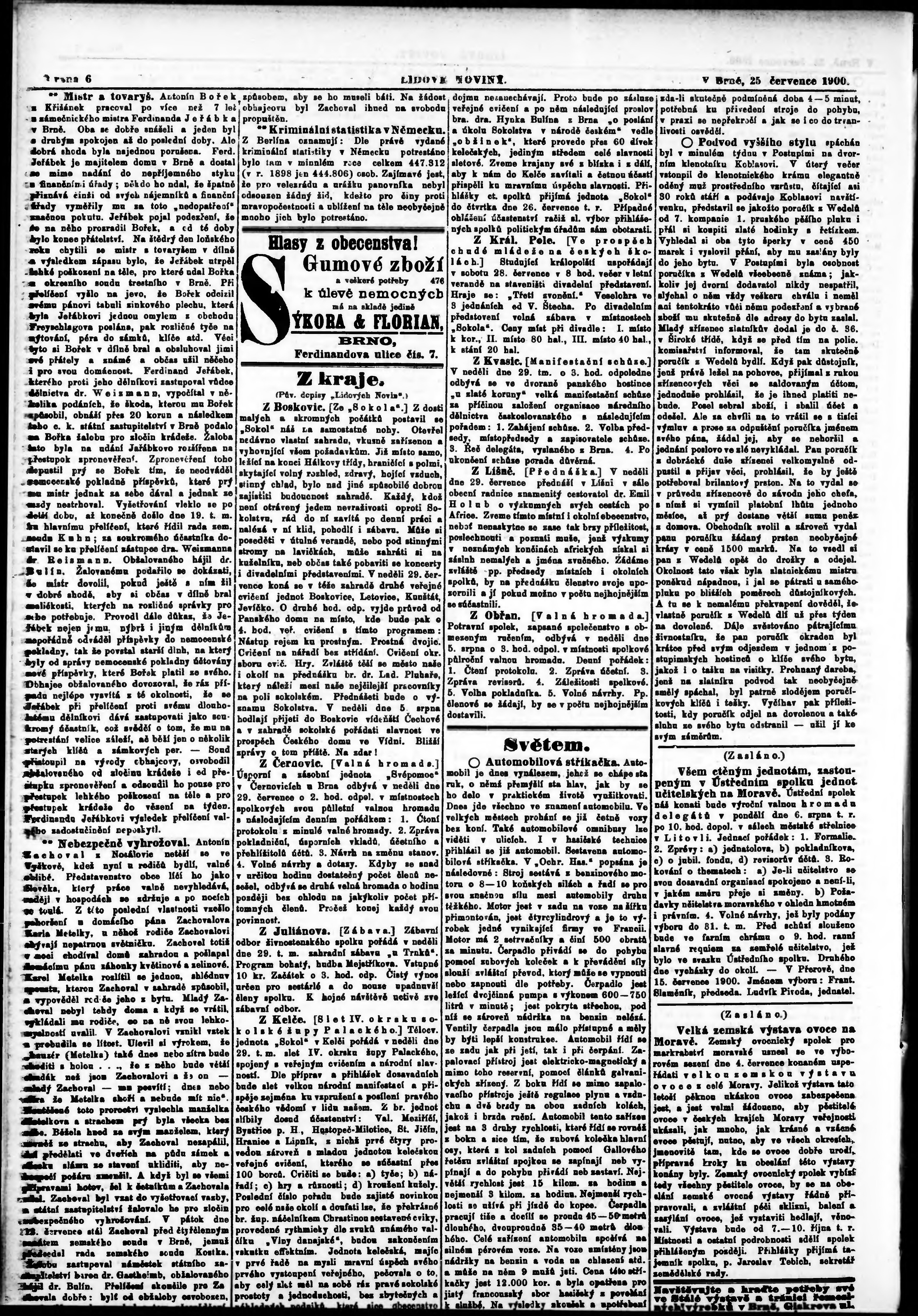 * Datum vydání výtisku: 25.7.1900 Číslo výtisku: 167 Poznámky k výtisku: s. 6 - (7) poškozená předloha;