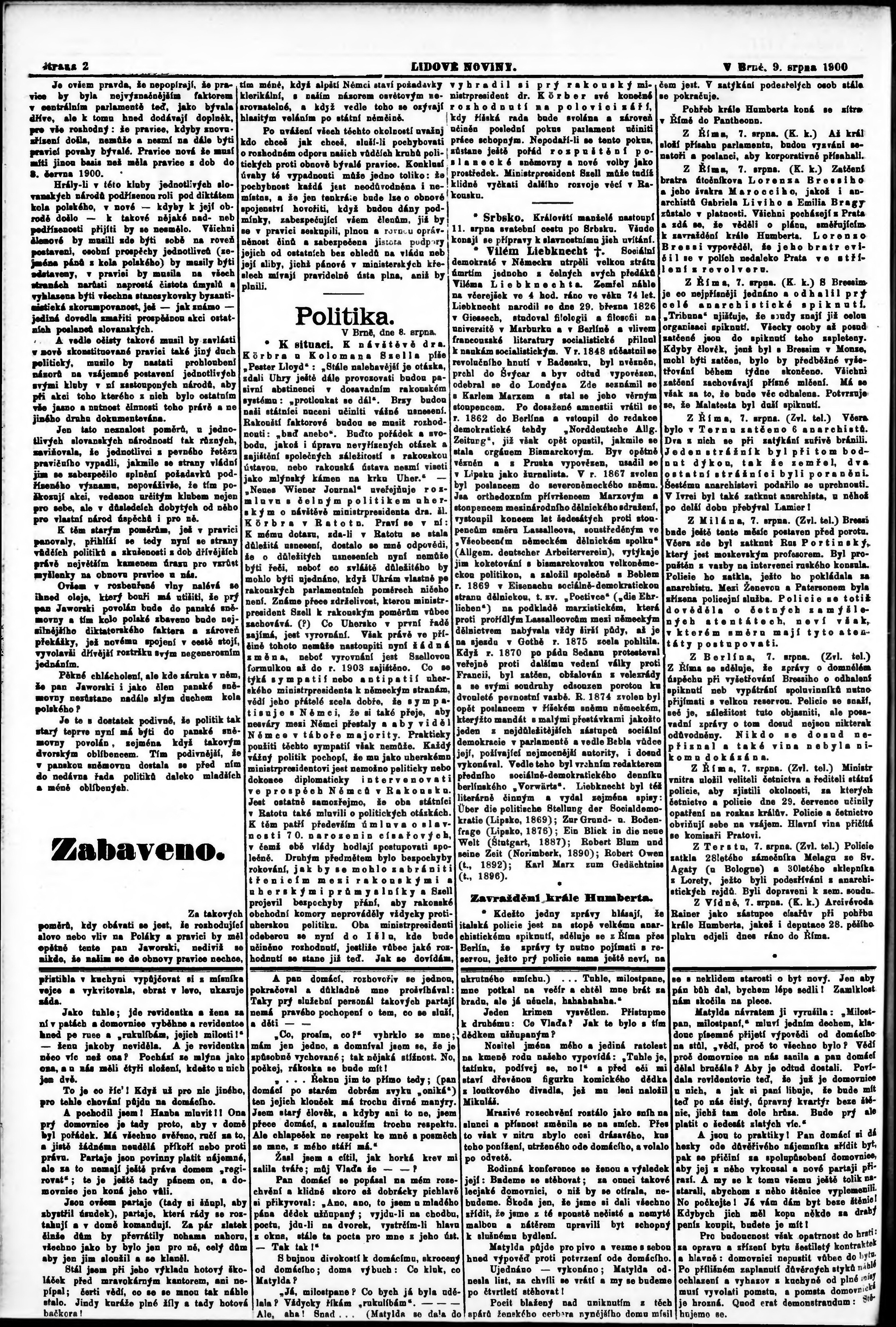 * Datum vydání výtisku: 9.8.1900 Číslo výtisku: 180