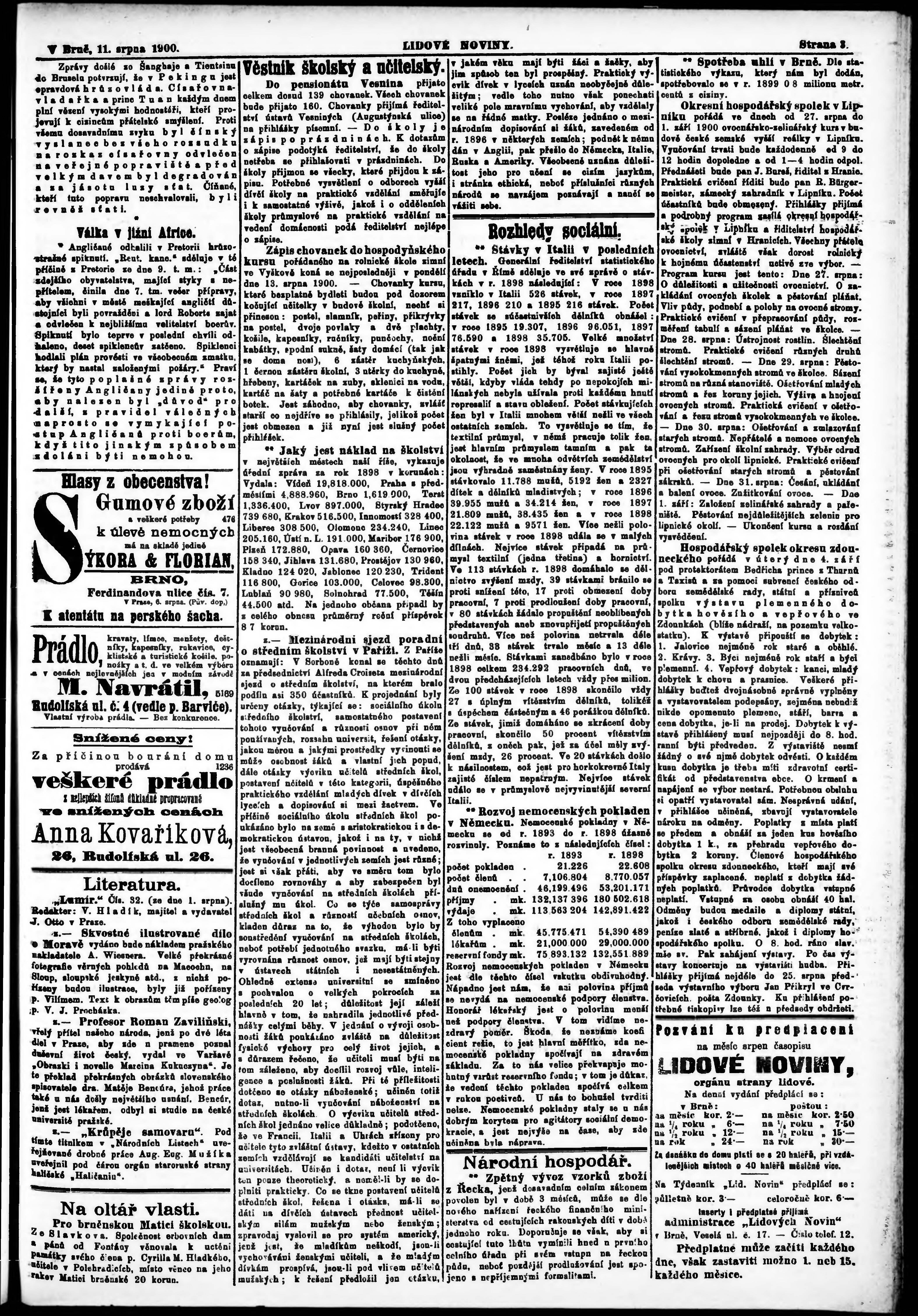 * Datum vydání výtisku: 12.8.1900 Číslo výtisku: 183