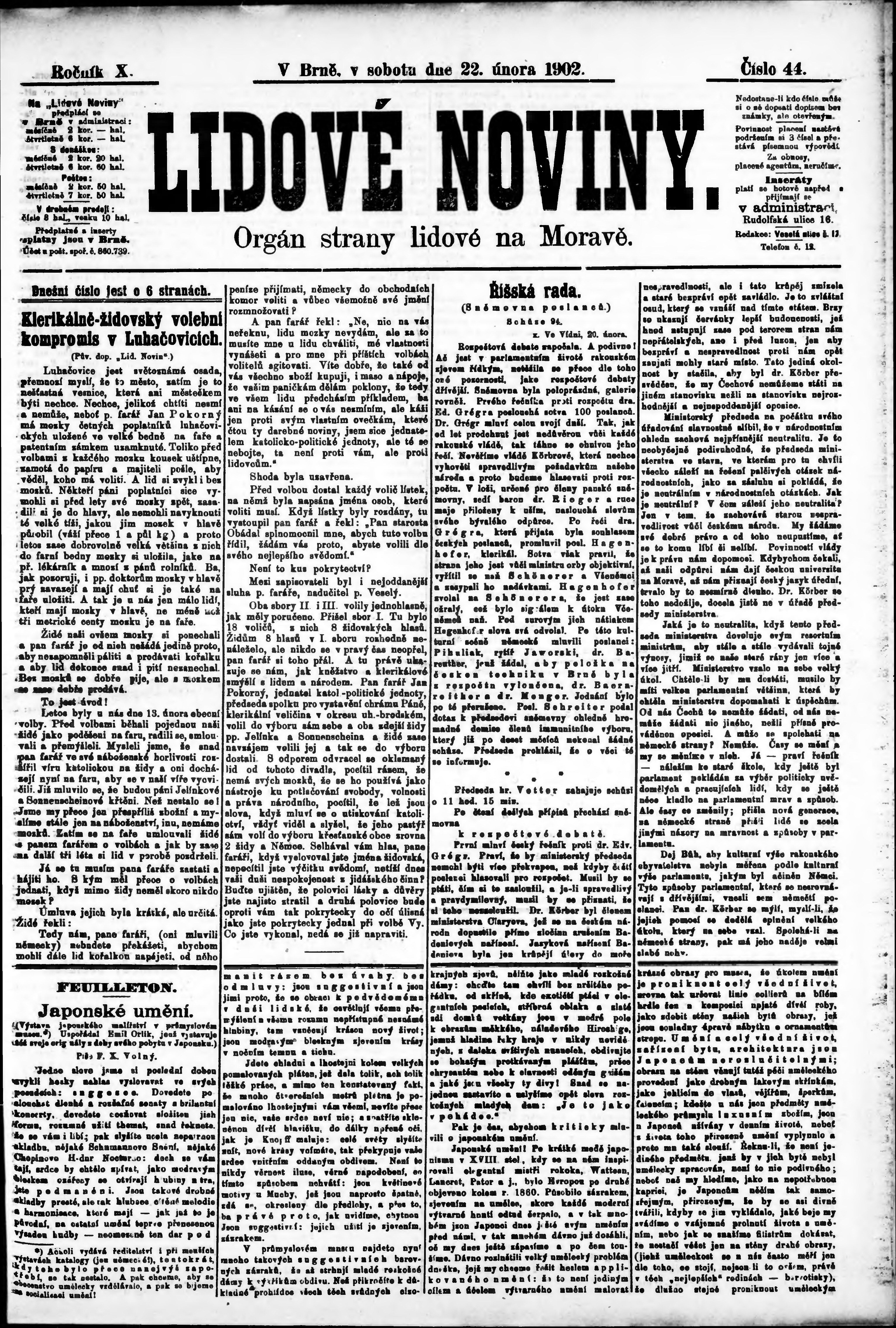 * Datum vydání výtisku: 22.2.1902 Číslo výtisku: 44