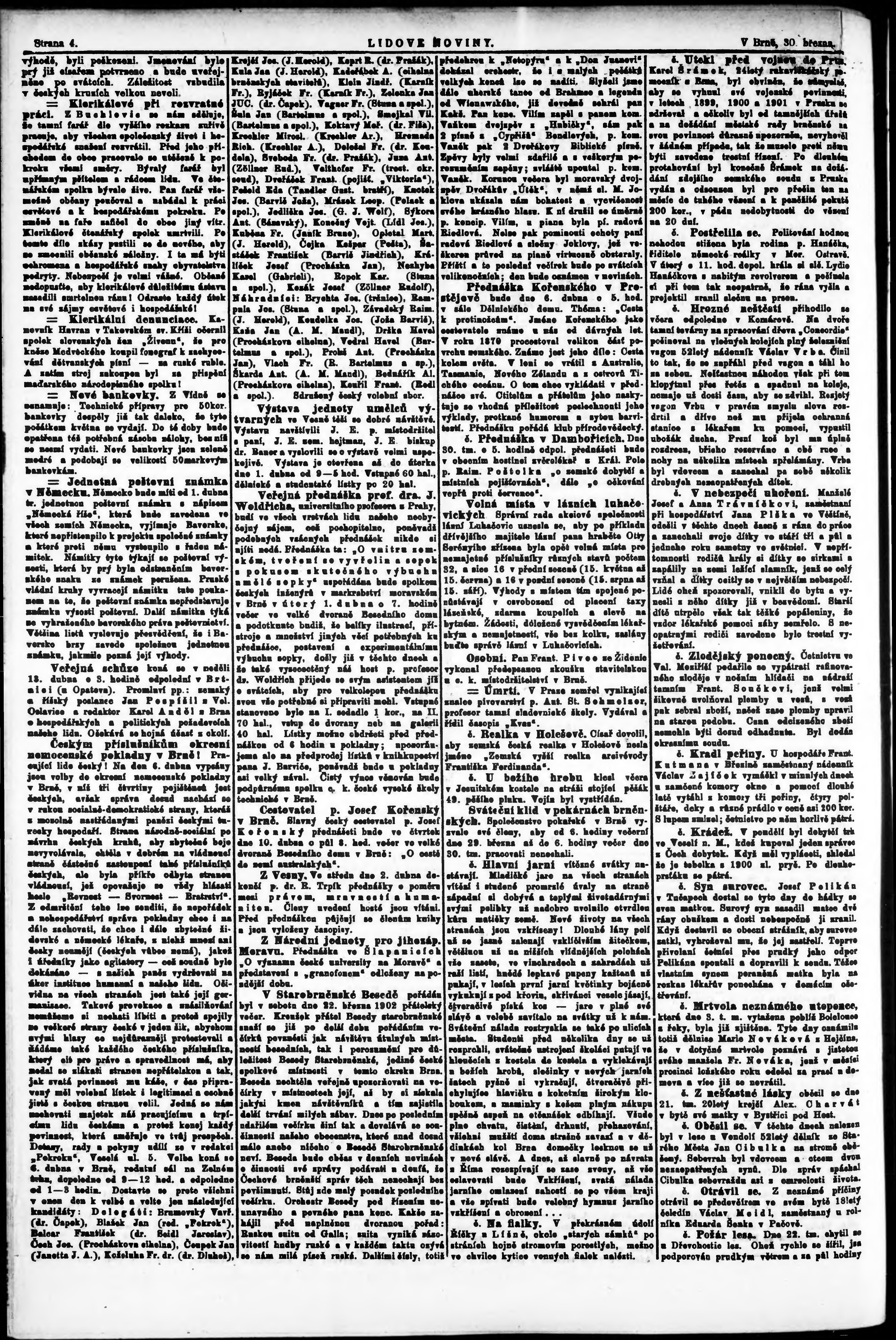 * Datum vydání výtisku: 30.3.1902 Číslo výtisku: 74 Poznámky k výtisku: s. 7 poškozená předloha;