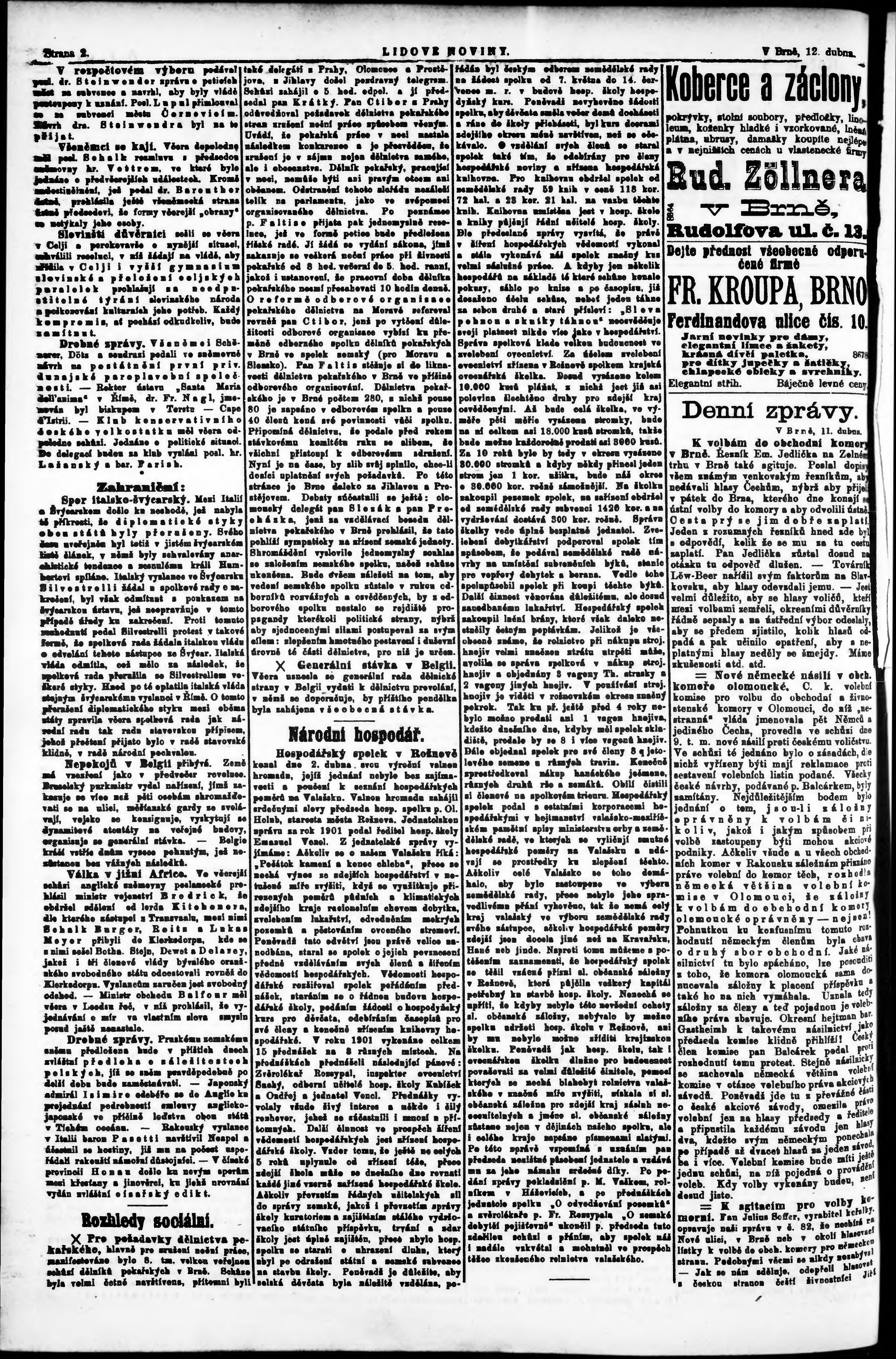 * Datum vydání výtisku: 12.4.1902 Číslo výtisku: 84 Poznámky k výtisku: s. 3 - 5 poškozená předloha;
