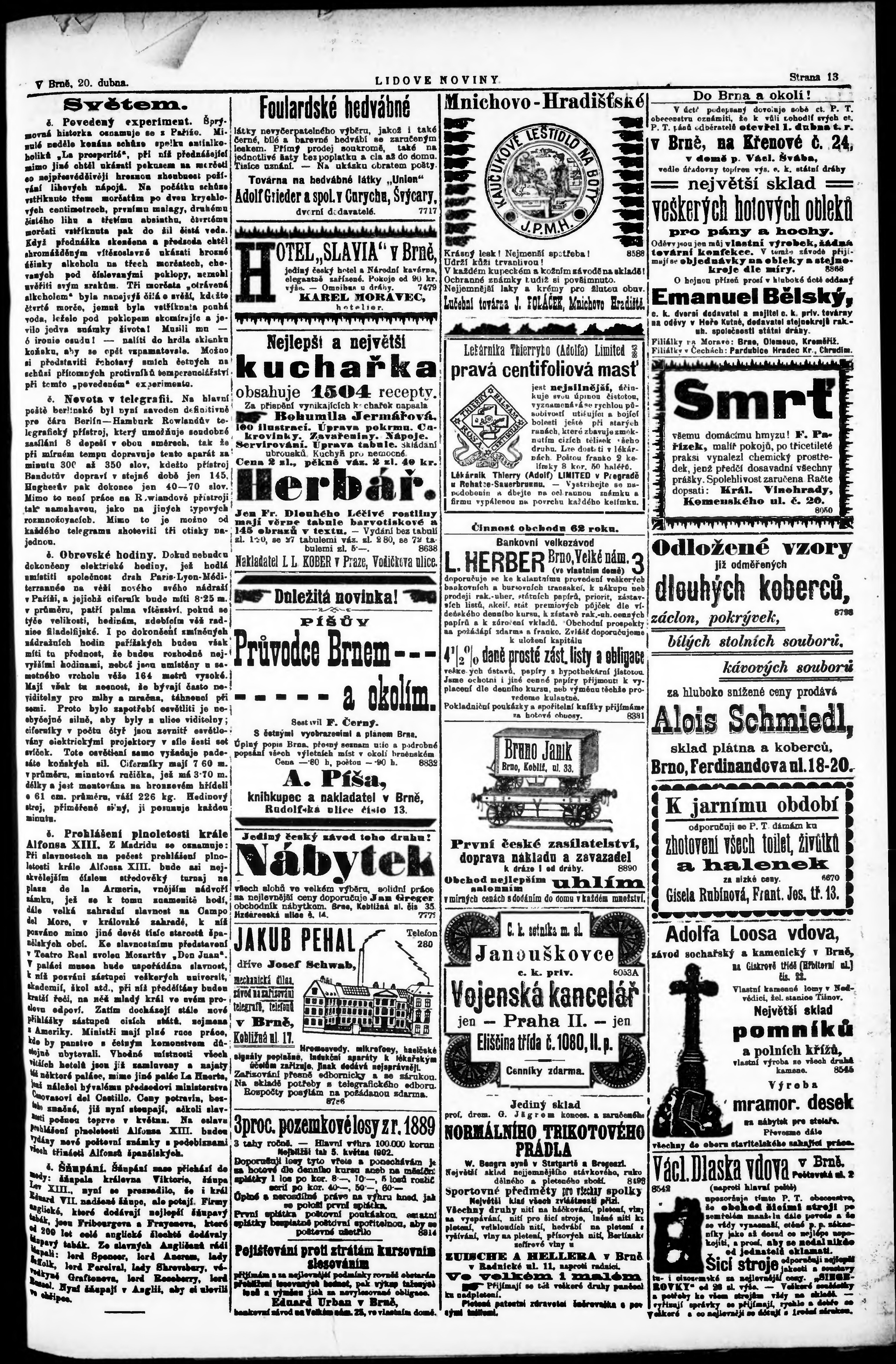 * Datum vydání výtisku: 20.4.1902 Číslo výtisku: 91 Poznámky k výtisku: s. (1) - 3, 9 - 10 poškozená předloha;