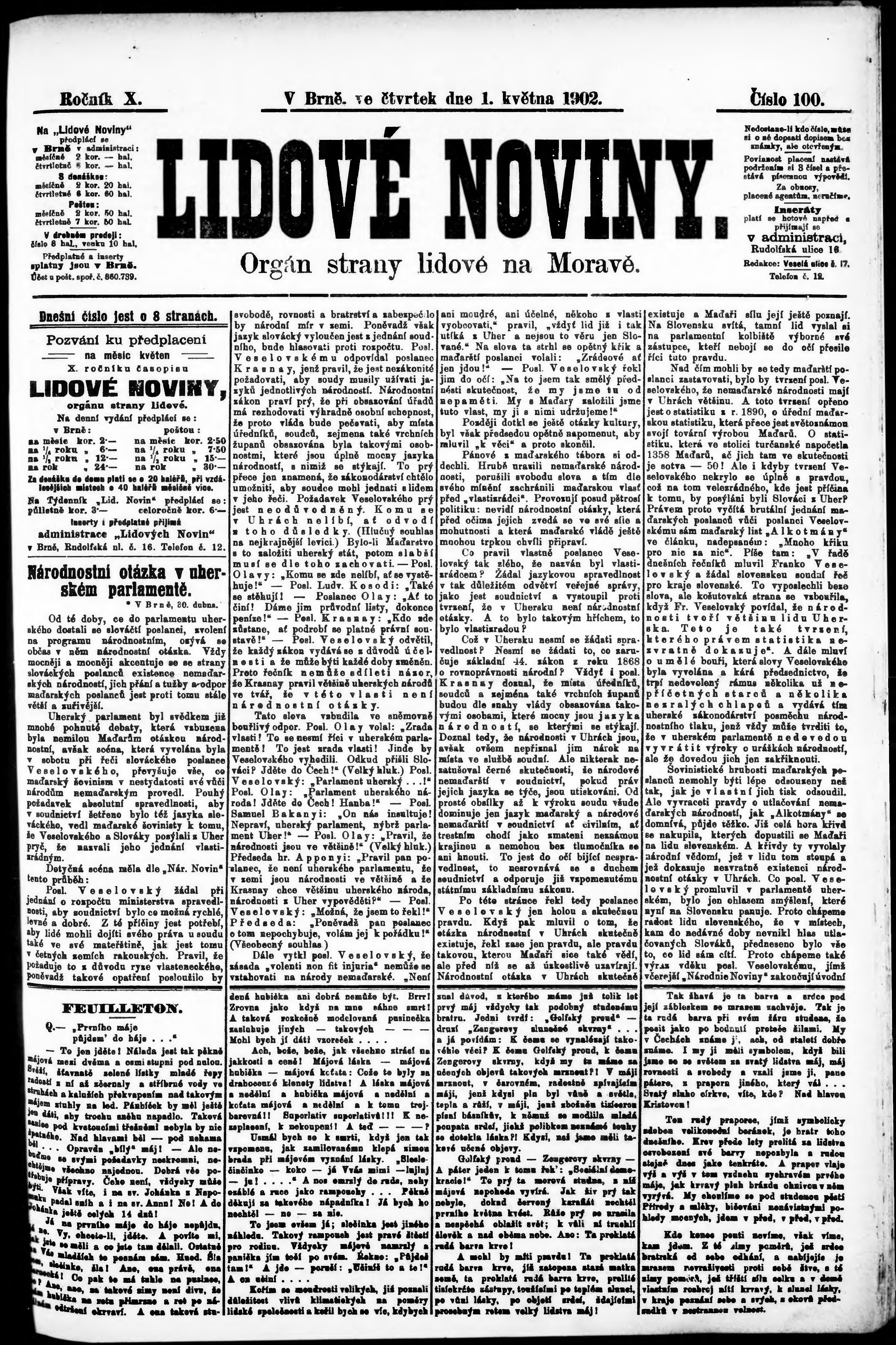 * Datum vydání výtisku: 1.5.1902 Číslo výtisku: 100 Poznámky k výtisku: s. (1), 5 - 8 poškozená předloha;