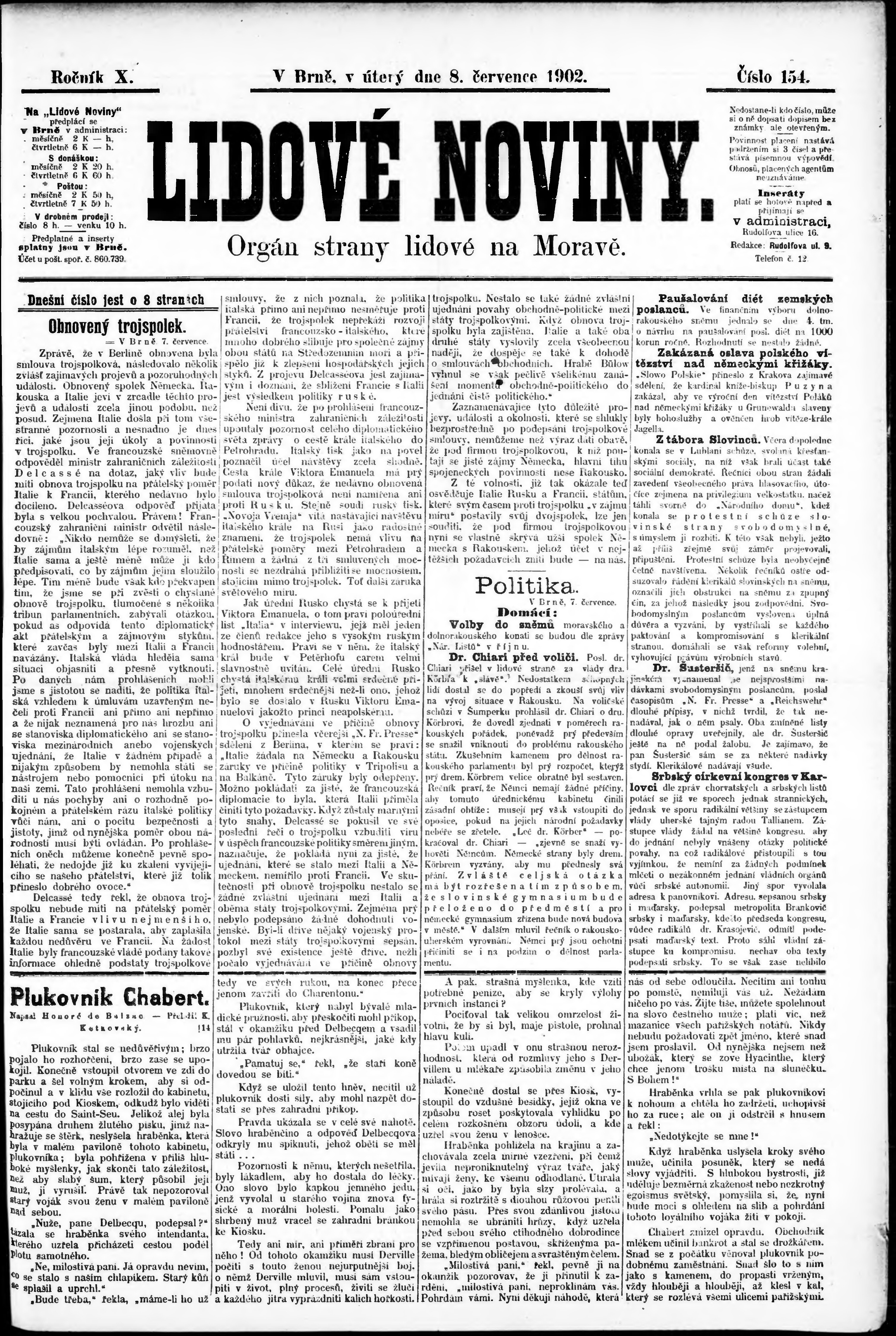 * Datum vydání výtisku: 8.7.1902 Číslo výtisku: 154