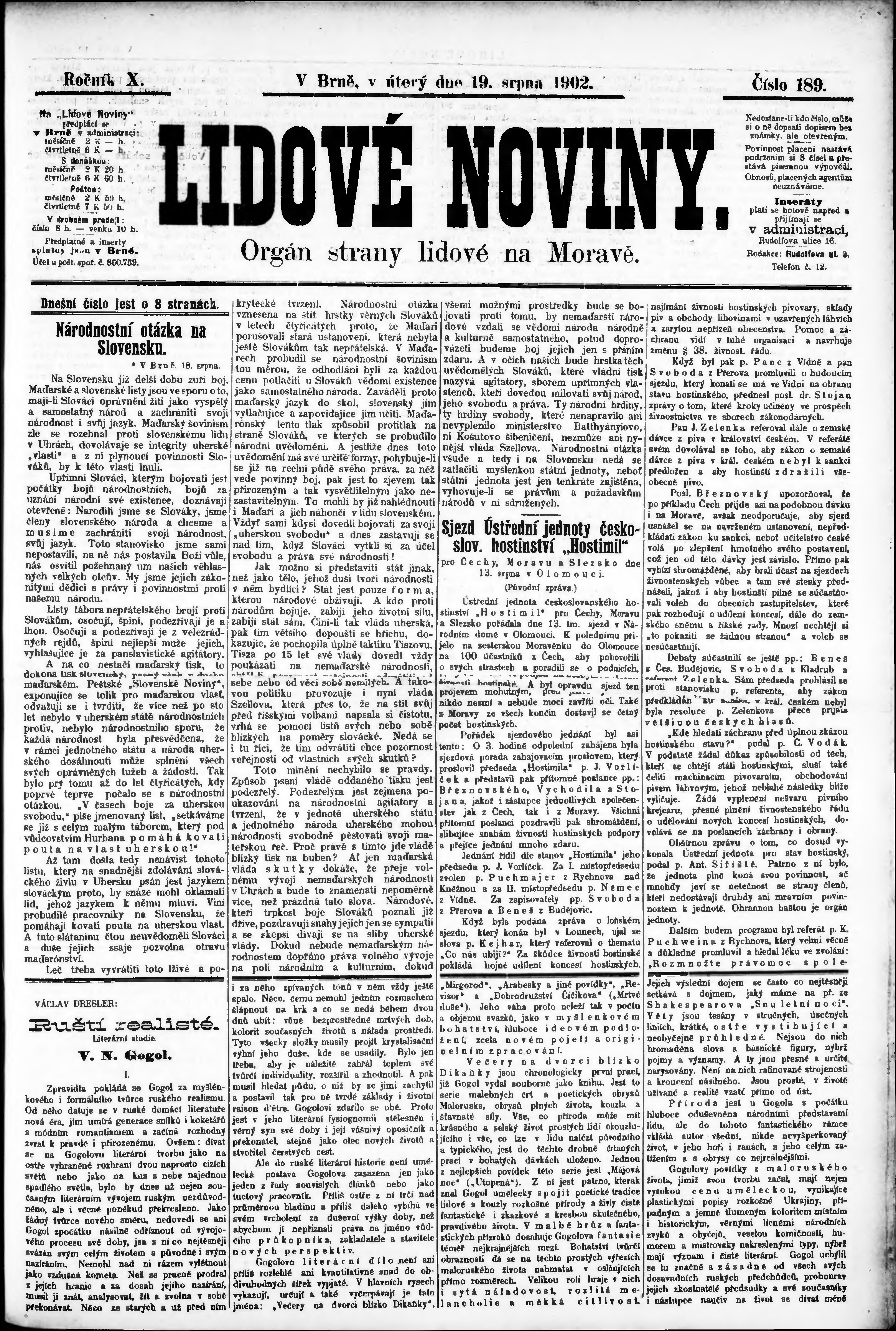 * Datum vydání výtisku: 19.8.1902 Číslo výtisku: 189