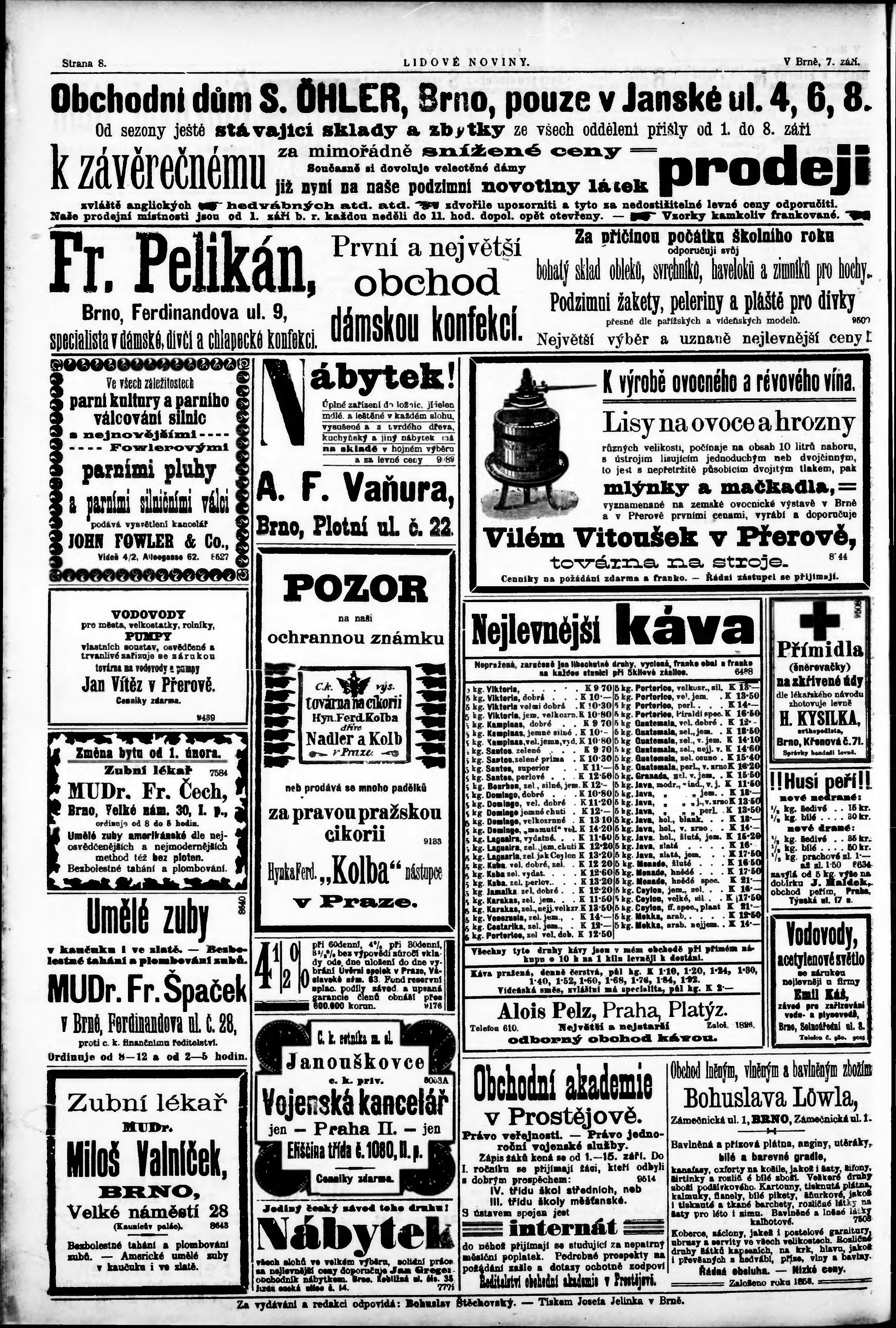 * Datum vydání výtisku: 7.9.1902 Číslo výtisku: 206