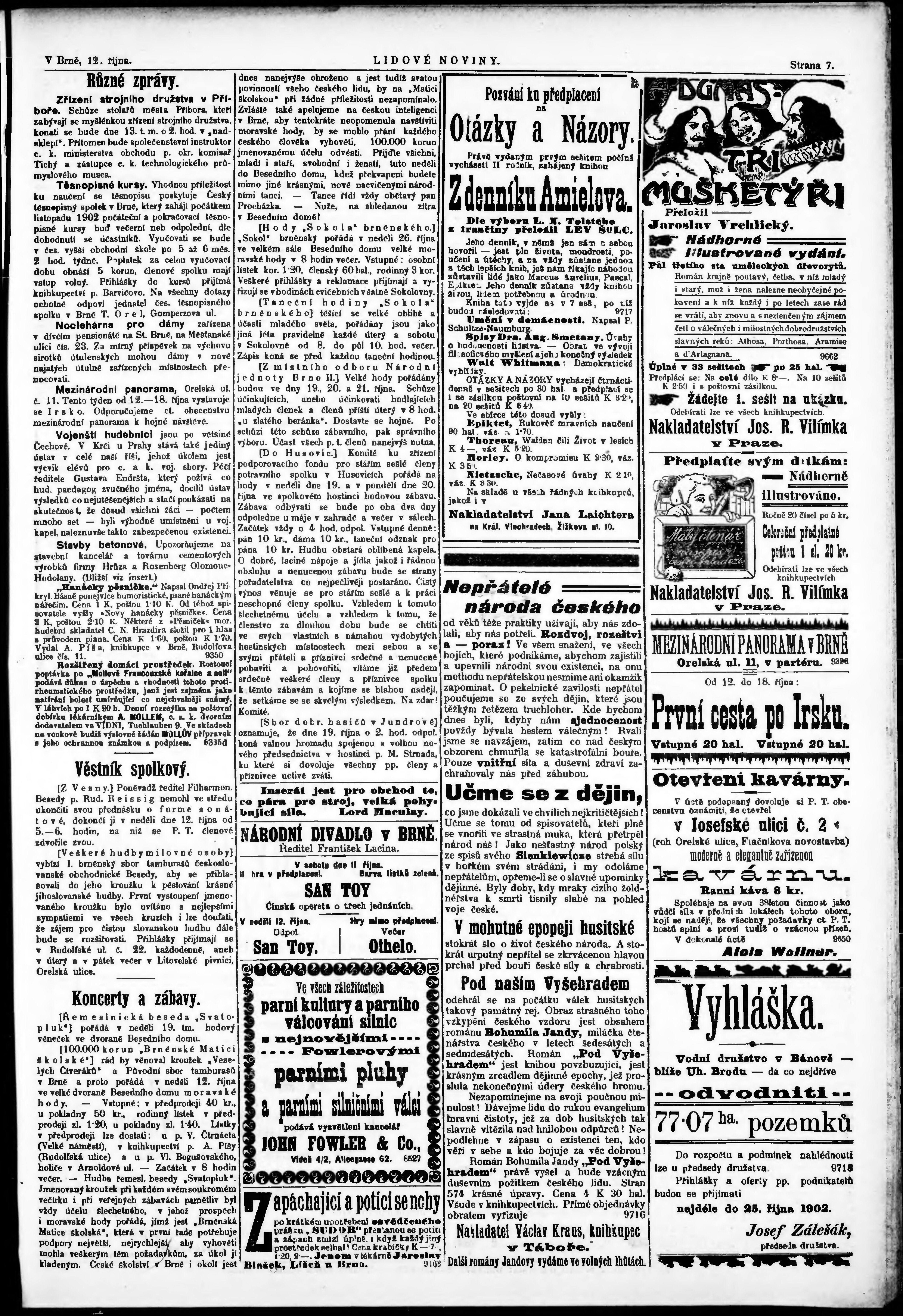 * Datum vydání výtisku: 12.10.1902 Číslo výtisku: 235