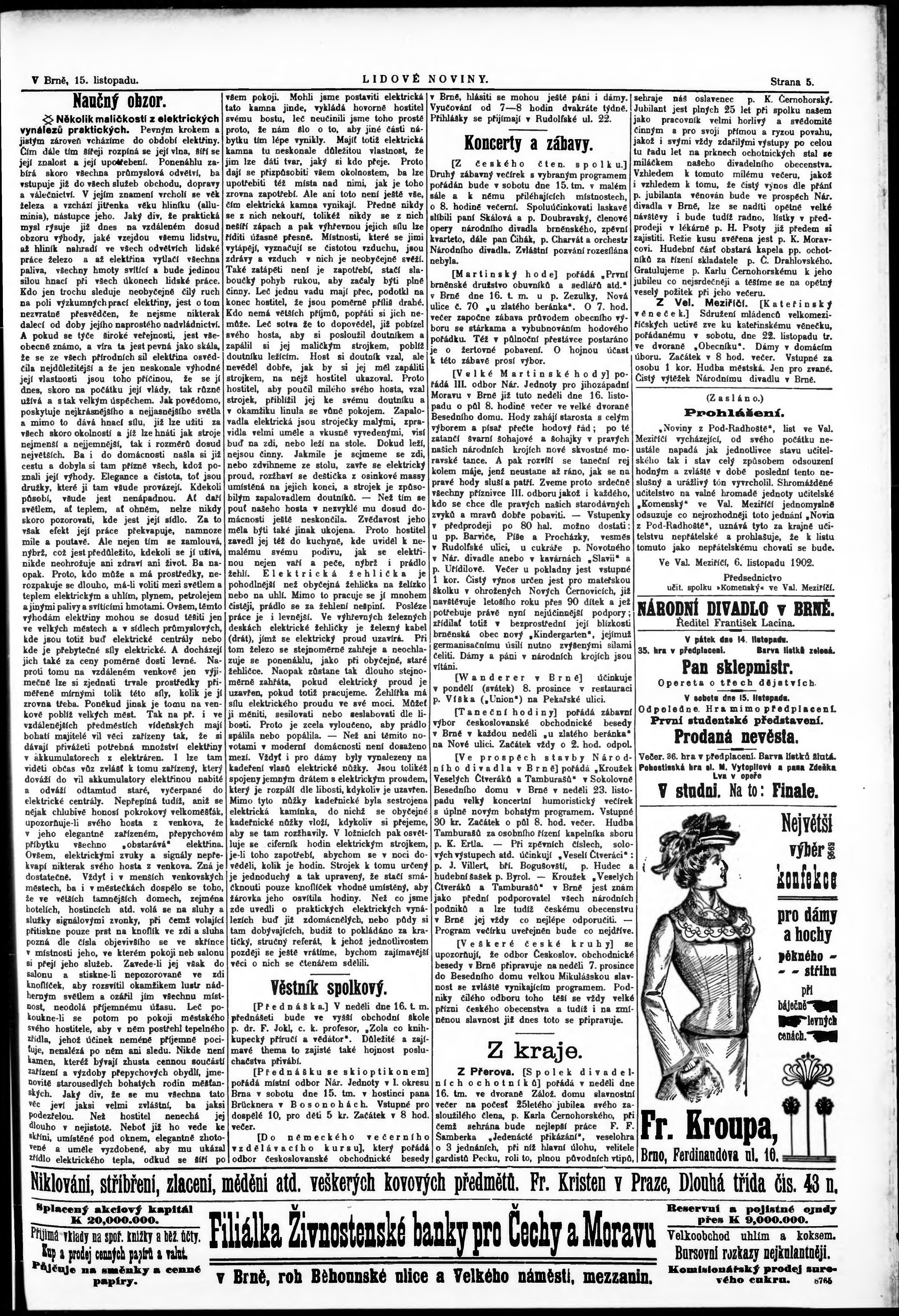 * Datum vydání výtisku: 15.11.1902 Číslo výtisku: 263