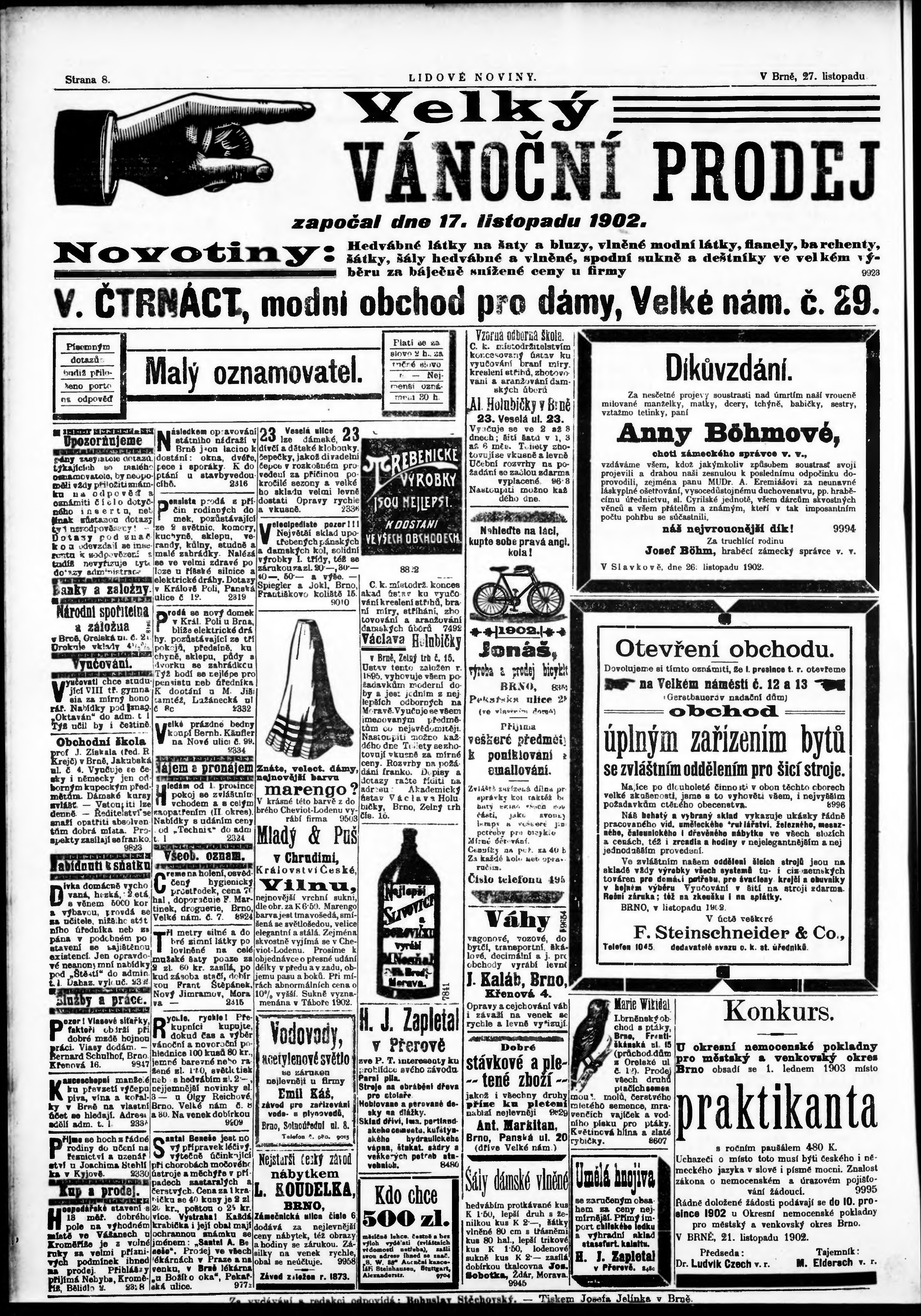 * Datum vydání výtisku: 27.11.1902 Číslo výtisku: 273