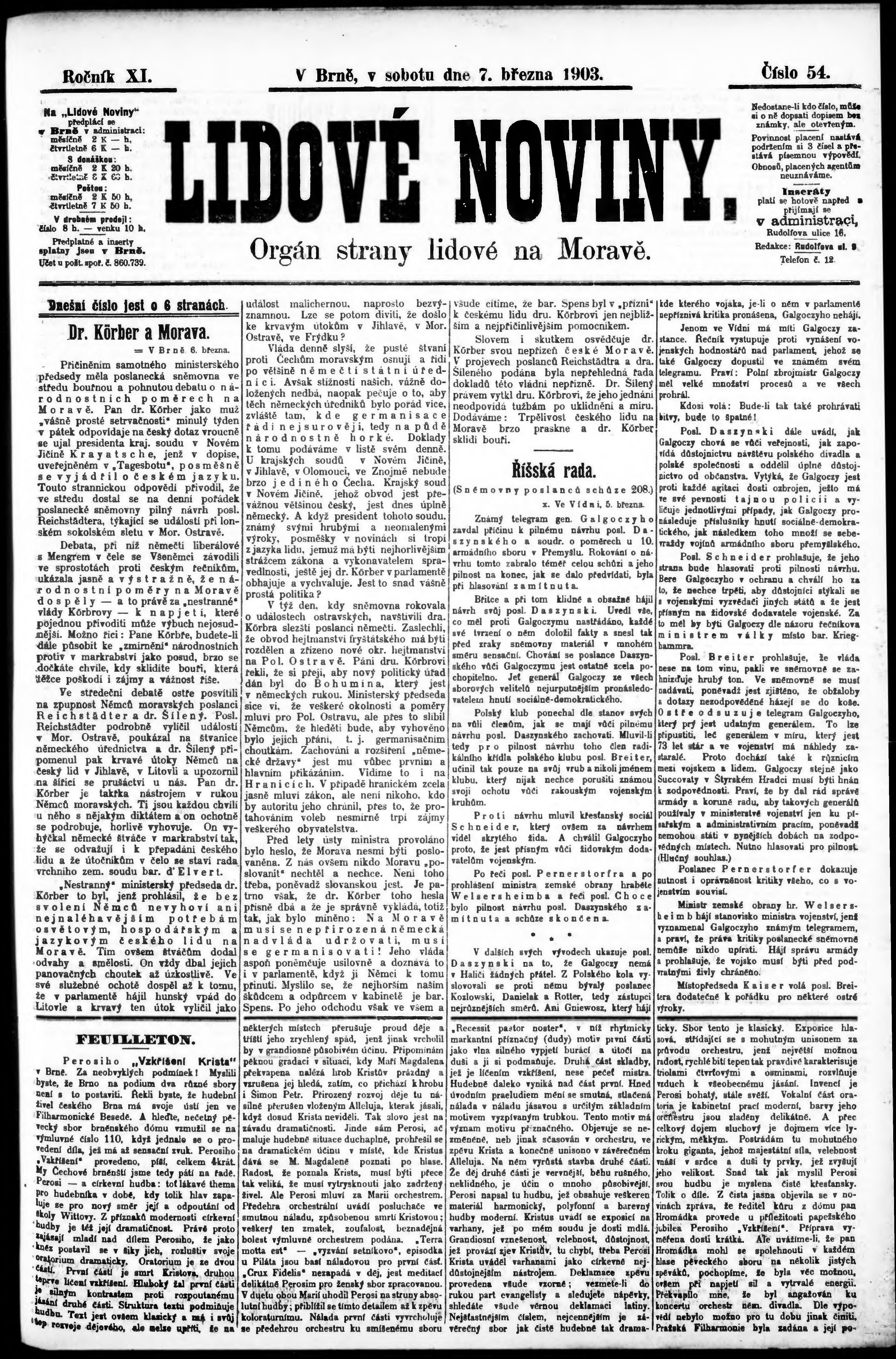 * Datum vydání výtisku: 7.3.1903 Číslo výtisku: 54
