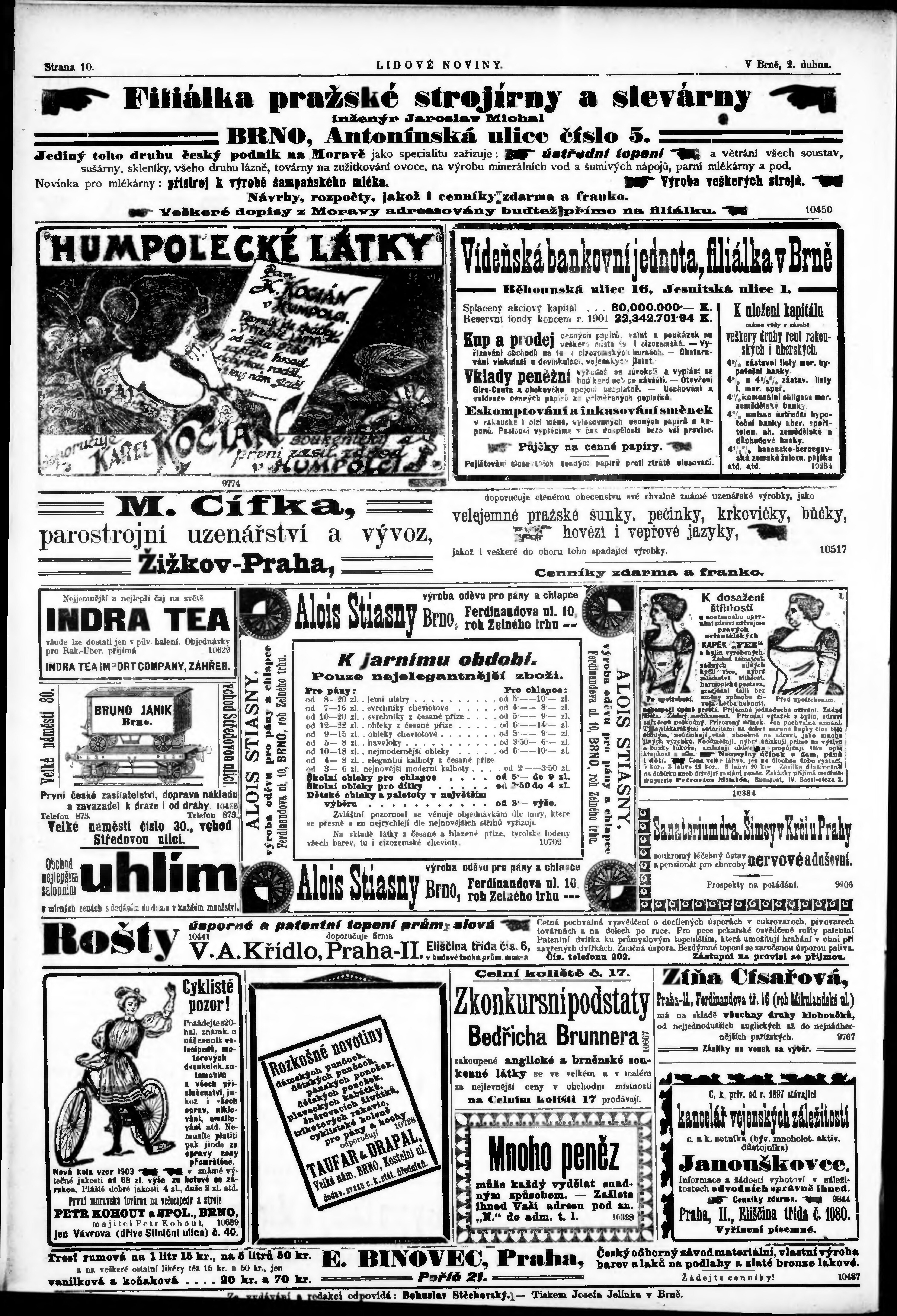 * Datum vydání výtisku: 2.4.1903 Číslo výtisku: 75