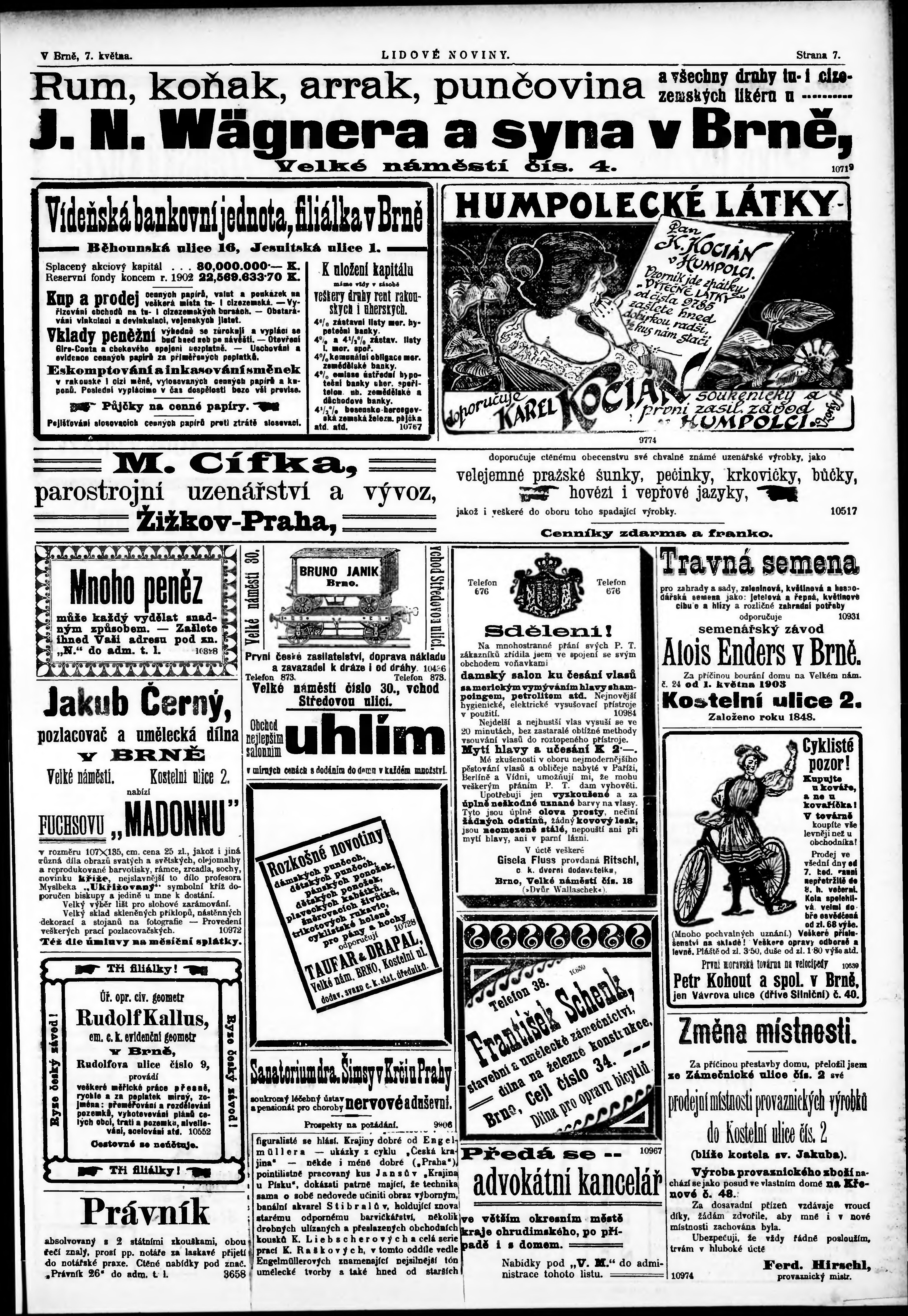 * Datum vydání výtisku: 7.5.1903 Číslo výtisku: 104 Poznámky k výtisku: s. 8 poškozená předloha;