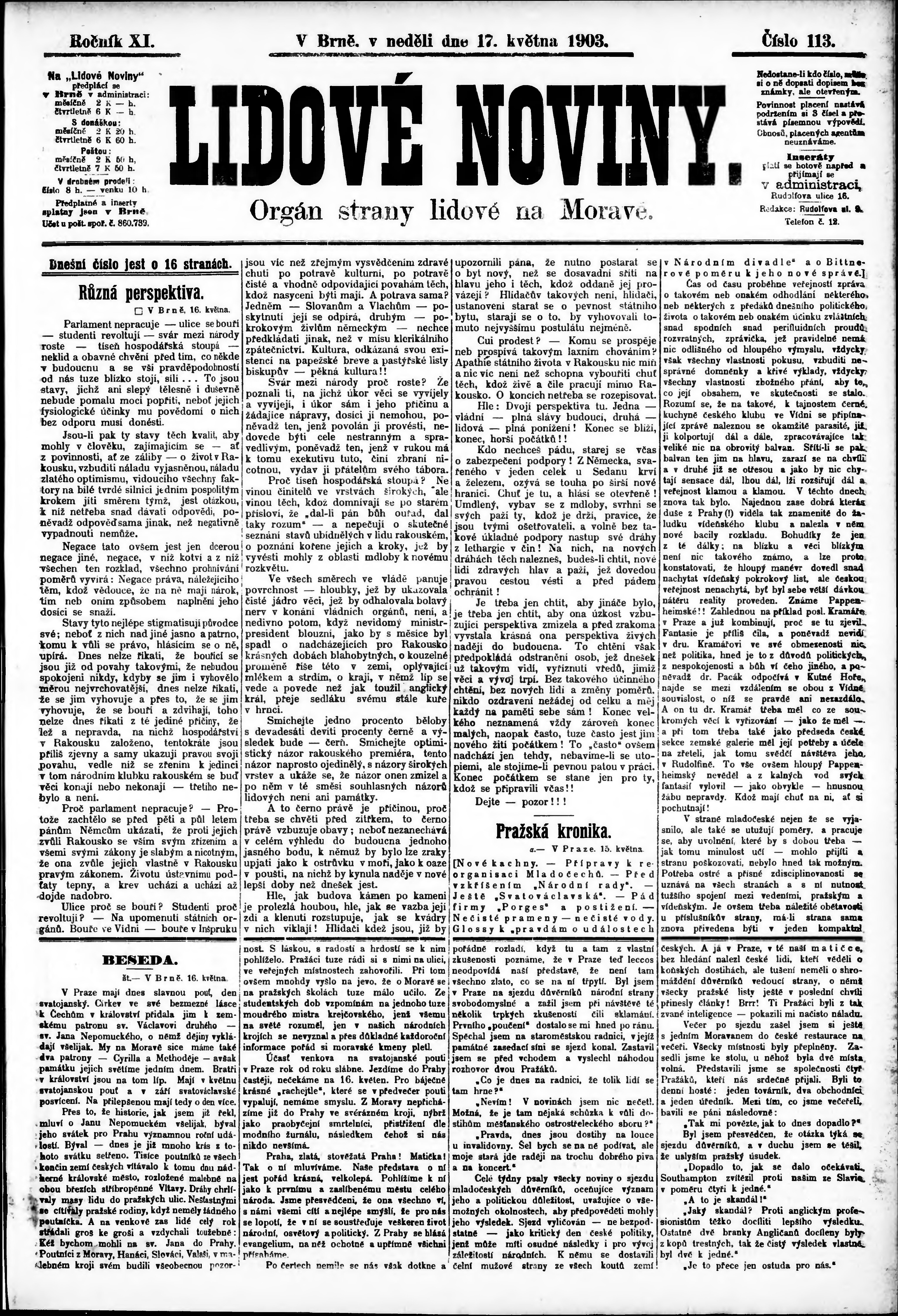 * Datum vydání výtisku: 17.5.1903 Číslo výtisku: 113