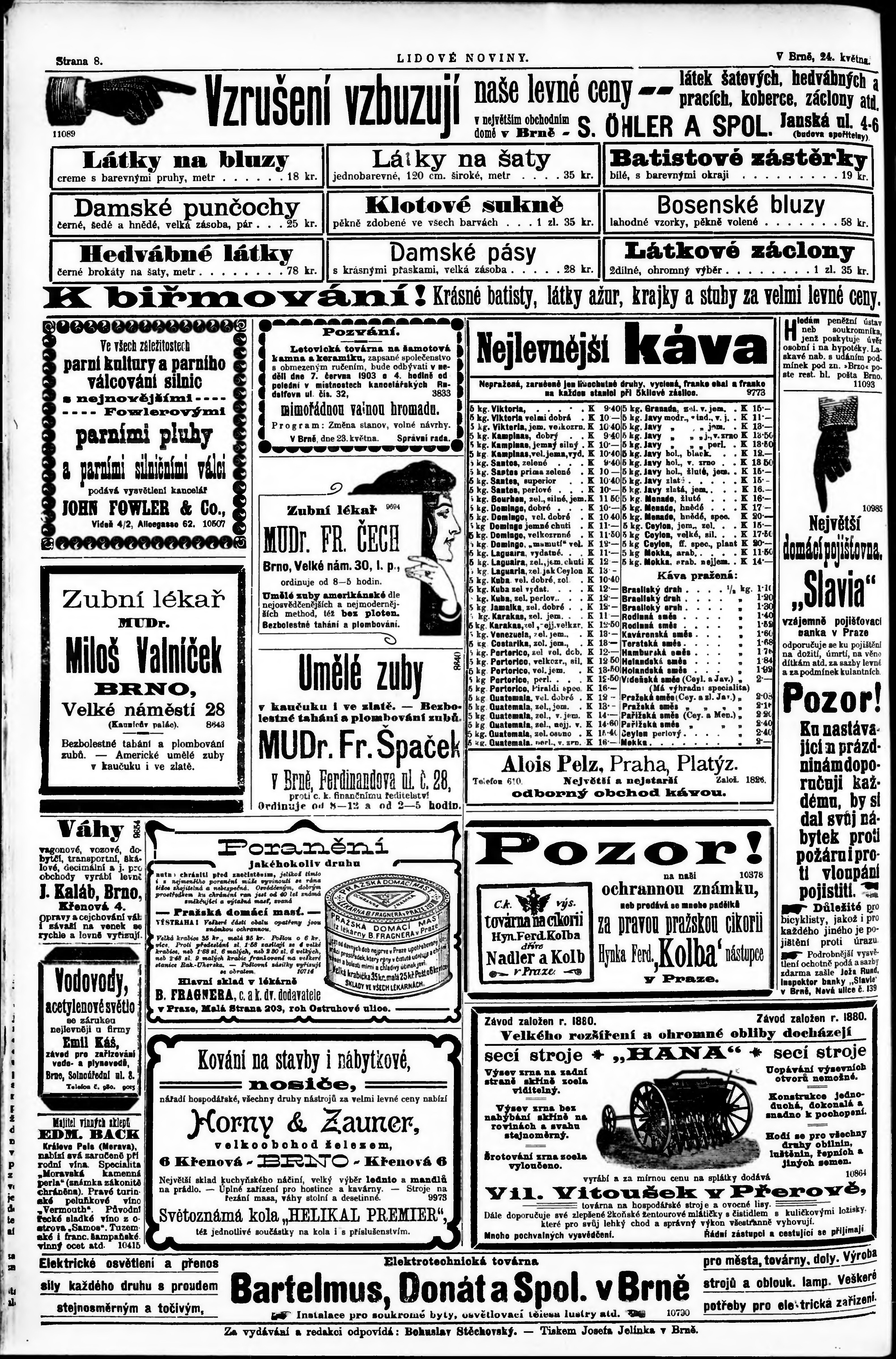 * Datum vydání výtisku: 24.5.1903 Číslo výtisku: 118 Poznámky k výtisku: s. 3 poškozená předloha;