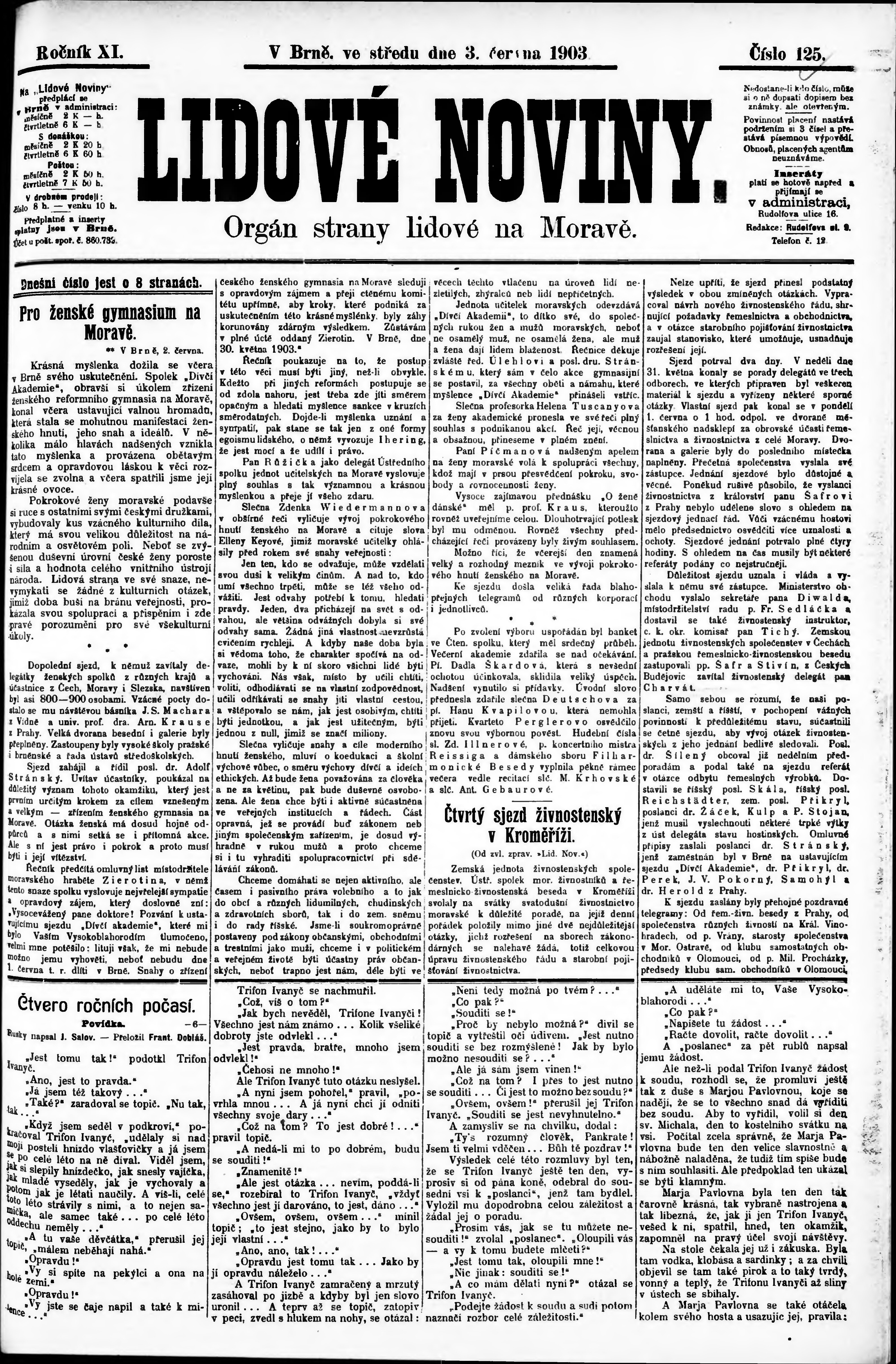 * Datum vydání výtisku: 3.6.1903 Číslo výtisku: 125 Poznámky k výtisku: s. 4 - 5 poškozená předloha;